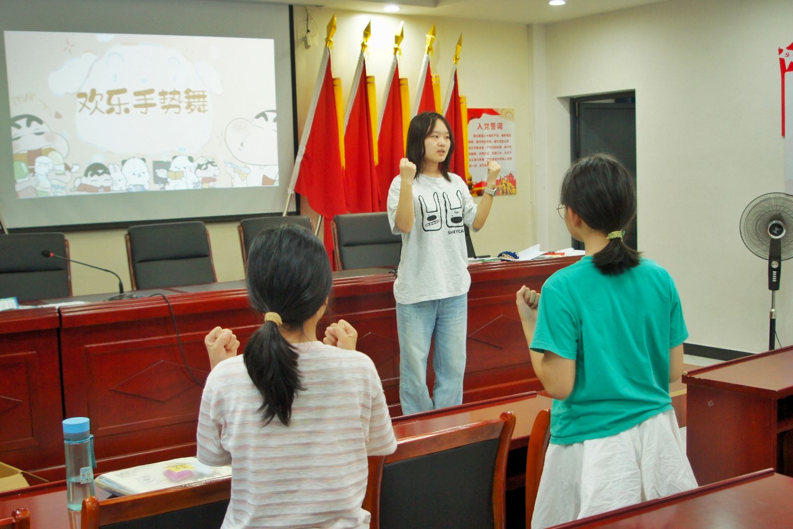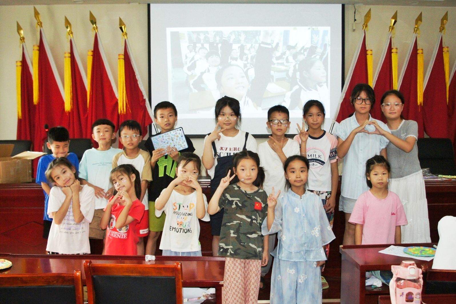 孩子们展示完手势舞后合影