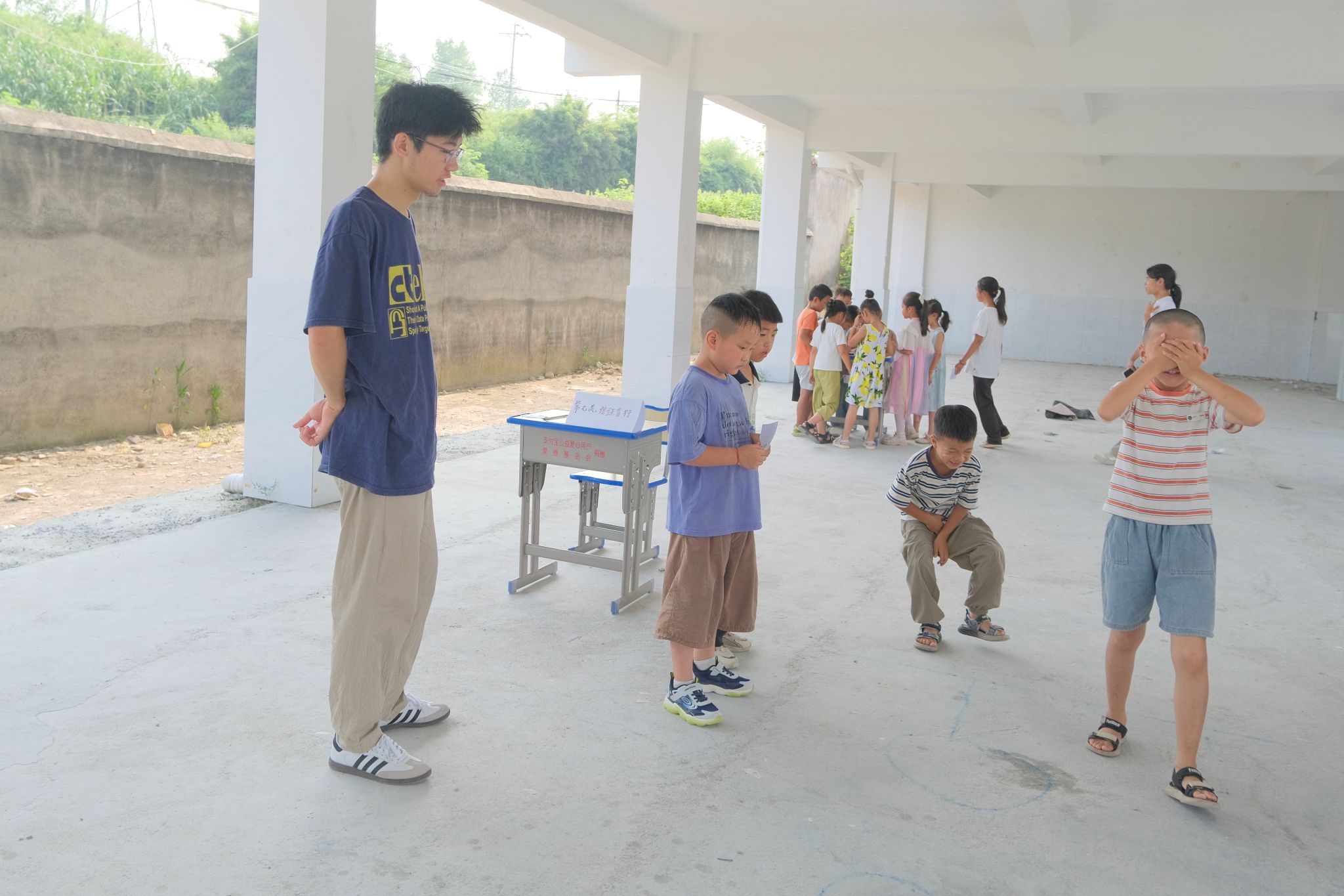 此次活动共设有八个活动项目,活动以做任务集印章的方式获取纪念品。活动开始前,“耕梦者联盟”实践团成员为学生讲解各个任务的规则并组织学生前往相应的活动区域。在“我来夸一夸”环节,学生们两两组队,相互夸赞,大声说出队友的优点;在“丢掉烦恼”环节,学生们将烦恼写在纸上并揉成一团扔进烦恼丢弃箱;在“信任盲行”中,学生们四人一组,相互合作,分组成员一人闭眼,剩余成员提示方位,帮助他躲避障碍,闯关成功;在“表情管理”环节,学生们根据提示词和示意表情图片依次进行表情模仿,放松心情。所有活动环节结束,“耕梦者联盟”实践团成员凭集满印章的集章卡为参与学生分发纪念品。