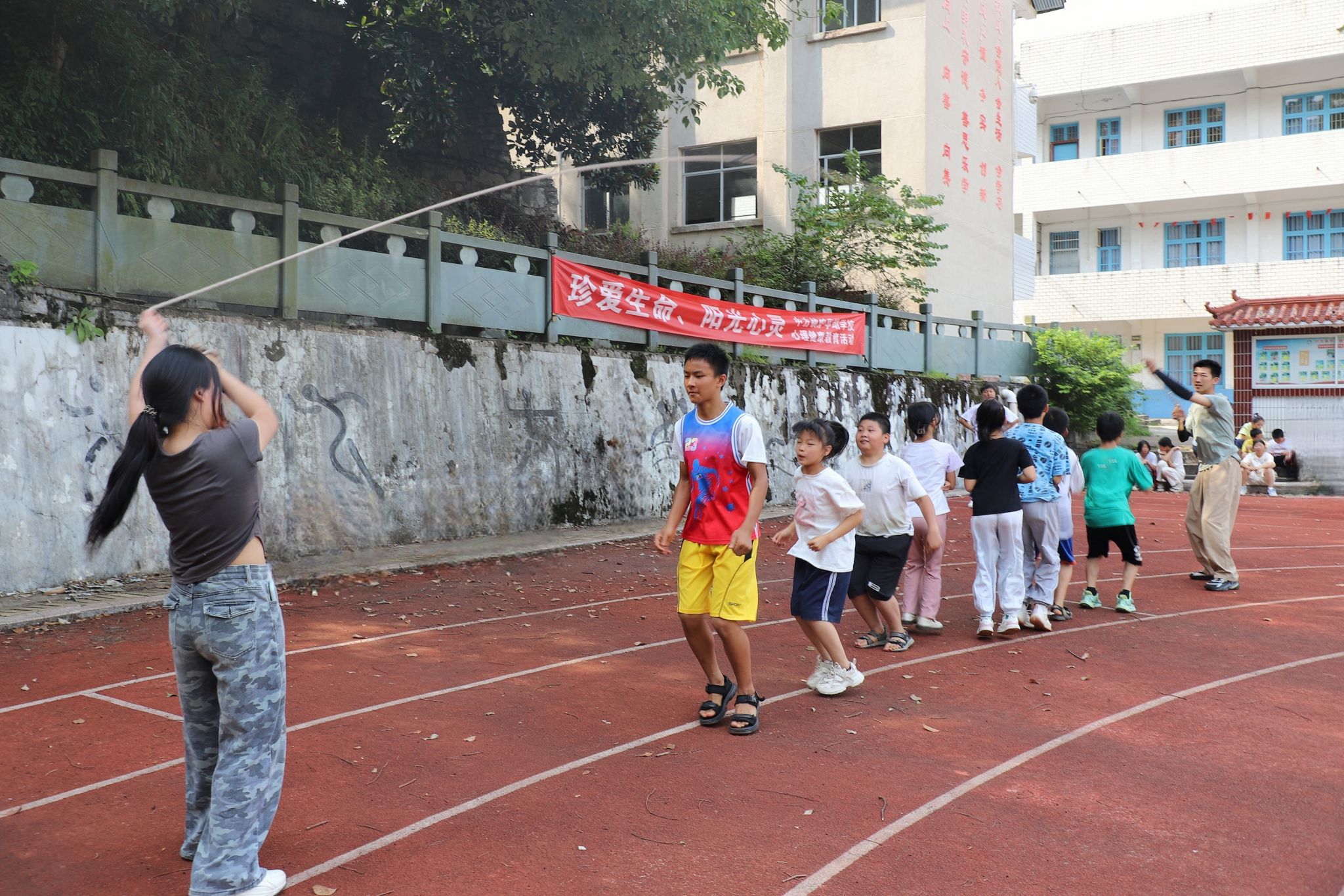 同学们一起跳大绳