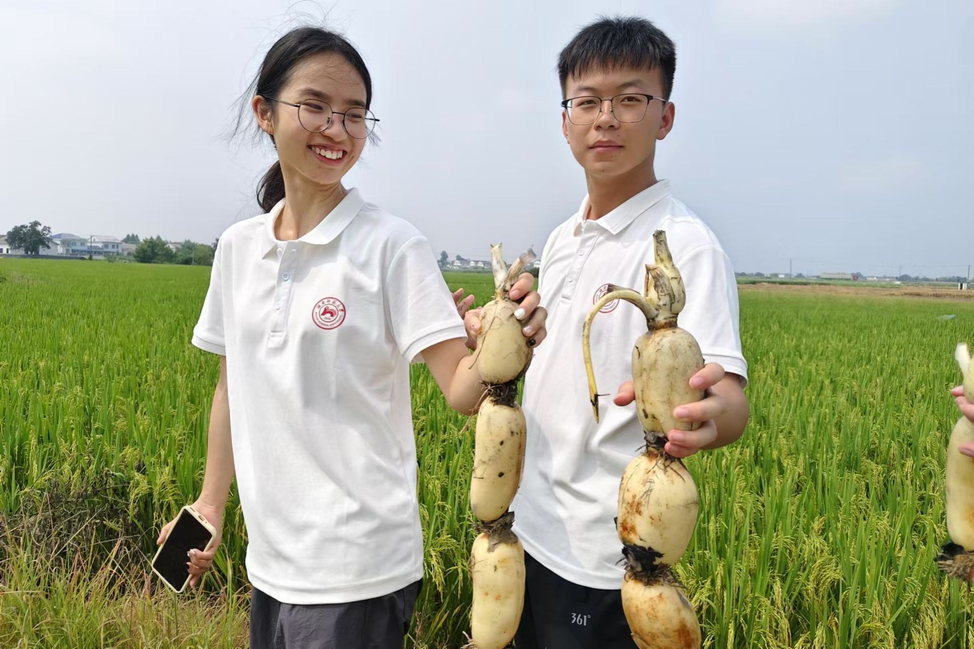 调研团成员展示玉臂藕收获成果