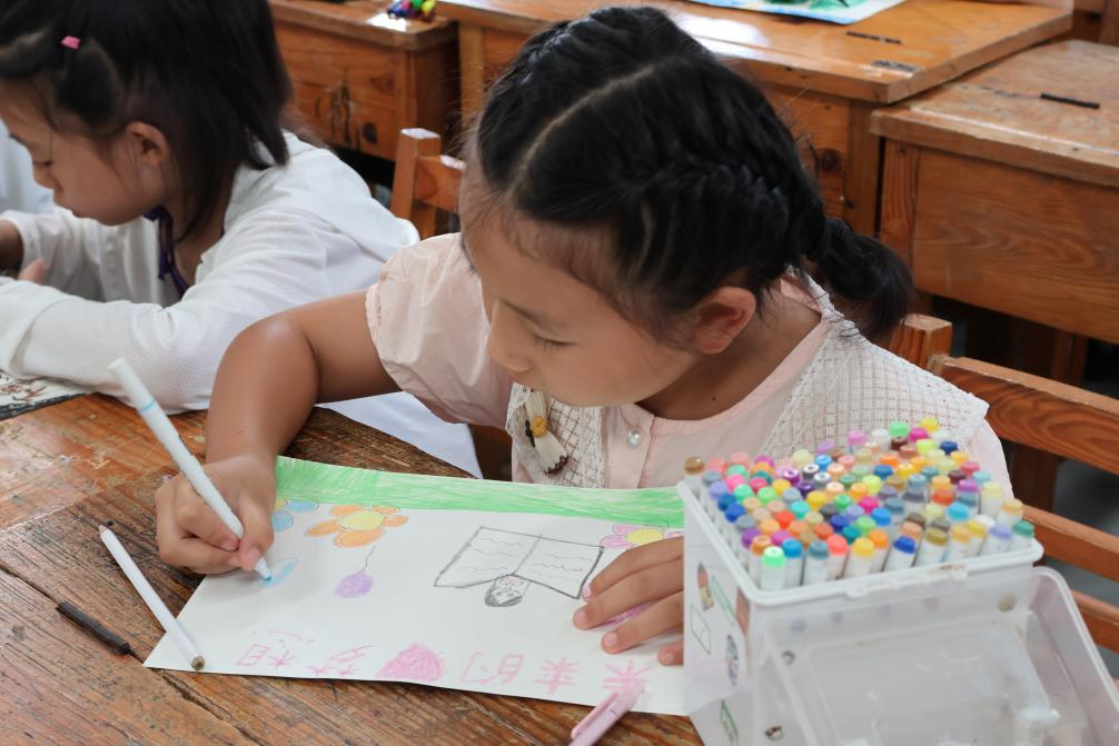 随后实践团开展“童心绘梦,色彩飞扬”绘画课堂。在创作过程中,主讲人引导孩子们围绕“家乡美景”和“未来梦想”两大主题展开创作,为孩子们提供了表达自我、发挥想象力的平台。活动结束后,实践团成员精心挑选出优秀作品,将其布置成小型展览。