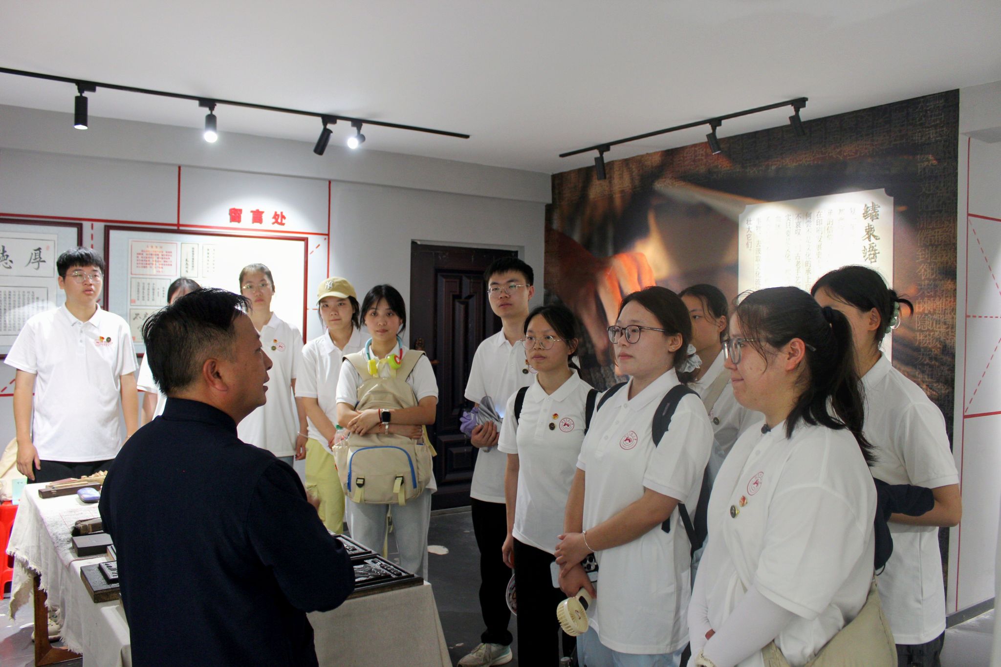 在小河乡木活字印刷非遗体验馆,实践团成员采访了浏阳市木活字印刷传承人吴汉涌。吴汉涌介绍浏阳市木活字印刷术作为省级非物质文化遗产,虽通过文旅融合发展提升了知名度,但仍面临着人才流失、创新转化不足、市场化程度低等现实困境。实践团成员就非遗技艺与现代创意结合、拓宽传播渠道等议题与负责人展开讨论,为木活字印刷术的传承和现代化发展建言献策。