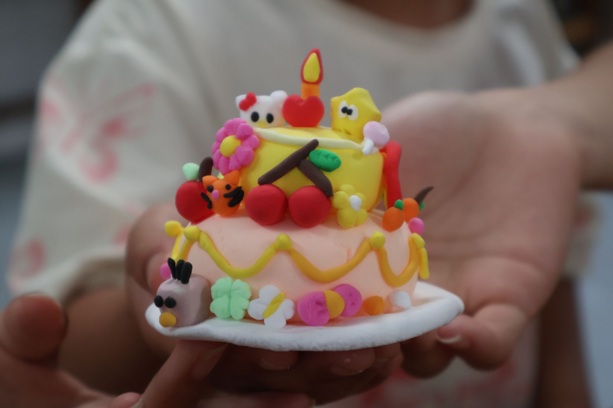 孩子们展示共同完成的粘土作品