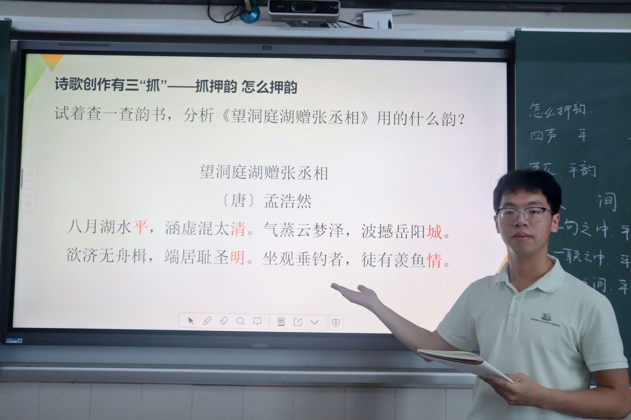 主讲人以中学语文课本上的经典律诗作为导入,拆解了律诗的平仄、对仗与押韵规则,并针对平仄交替、对句工整等关键知识点进行了重点讲解与示范。为了让抽象的格律更易理解,课程设置了“格律拼图”、“对仗接龙”等互动游戏。学生在游戏中掌握了基本规则后,课程进入实践创作阶段,主讲人鼓励学生以身边事物或夏日感受为题,尝试创作一首短诗。