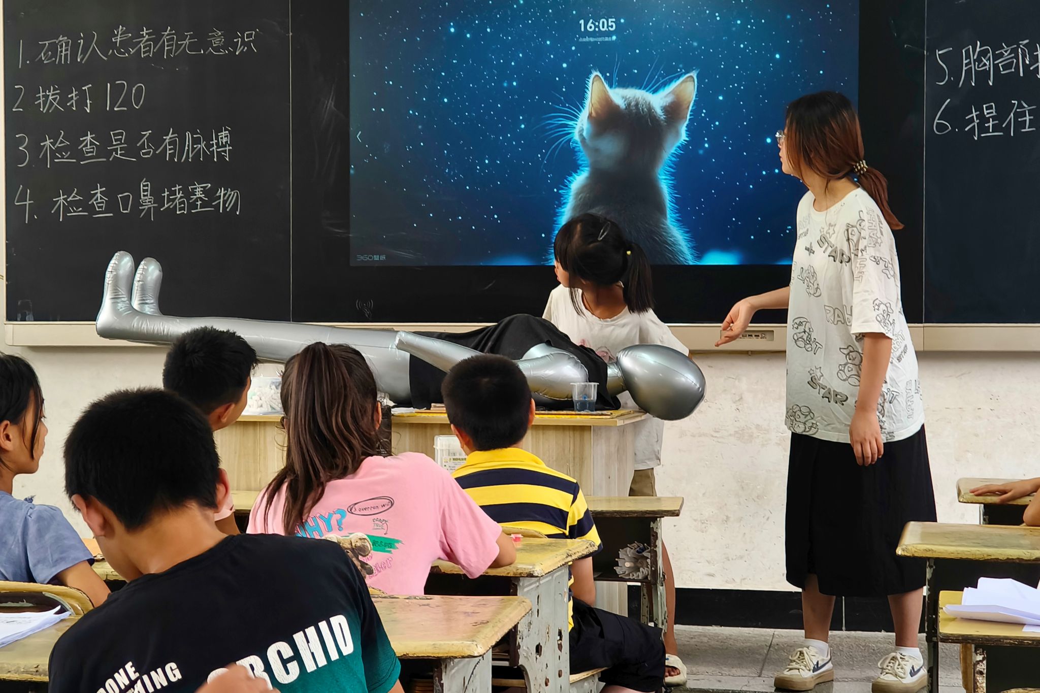 在实践教学环节,团队成员采用情景模拟与急救知识问答相结合的方式,引导学生深入思考同伴溺水时的正确处理方法。通过互动式教学,重点纠正常见认知误区,着重普及科学救援方法。教学过程中,团队成员还开展了急救技能专项教学,帮助学生掌握急救操作要领,并组织现场实操练习,确保学生将理论知识转化为实践能力。