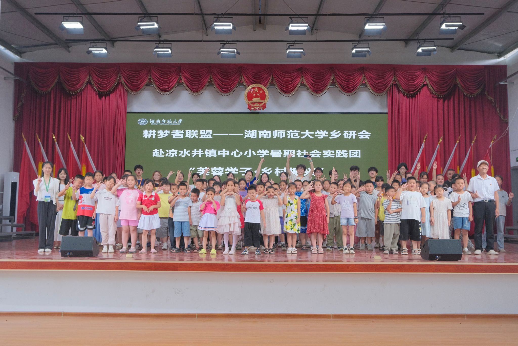 (通讯员 周涵韵 沈星辰)7月12日上午,公共管理学院“耕梦阡陌,百链成金”——乡研会赴沅陵县百合村暑期社会实践团(以下简称“耕梦者联盟”)在凉水井镇中心小学礼堂举行夏令营结营仪式。凉水井镇中心小学少工委委员兼辅导员贺忠民、凉水井镇中心小学副校长张悦、参与夏令营的全体孩子们、家长和耕梦者联盟全体成员参与此次仪式。