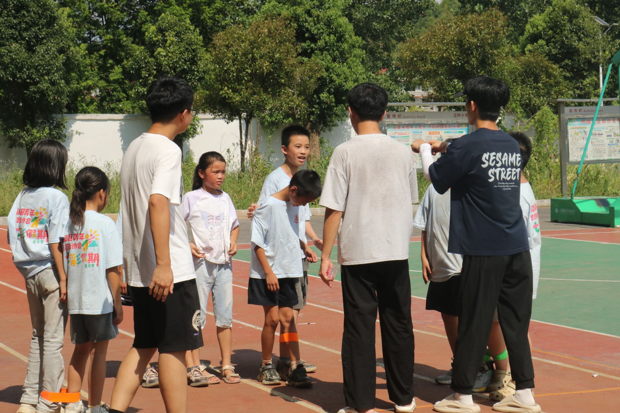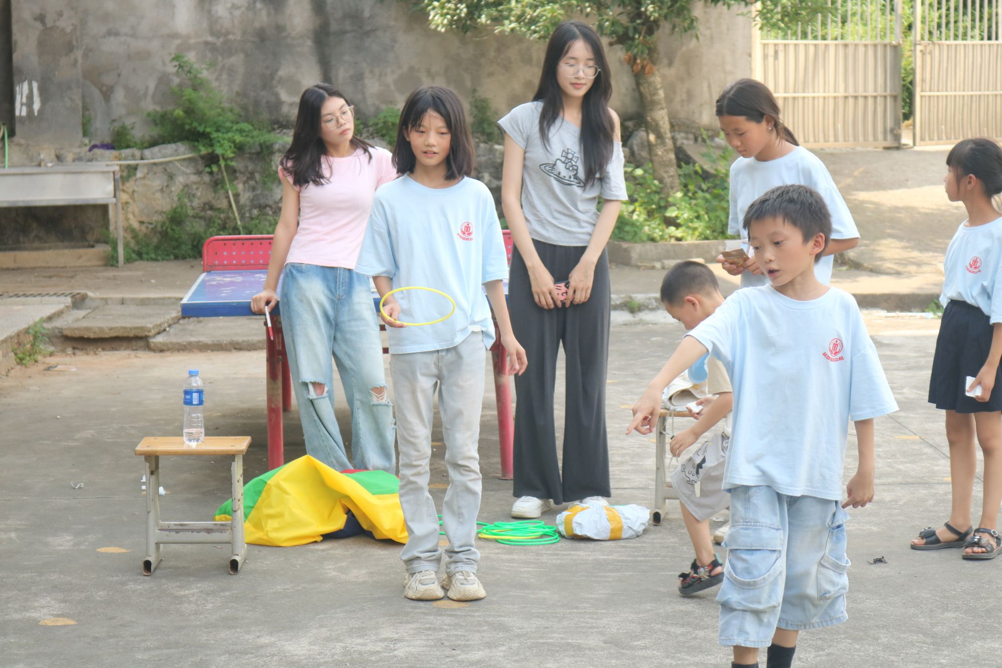 (通讯员 陶薇羽 裘甜甜)7月14日下午,“跃动青春,助力乡兴”——数学与统计学院青年传媒中心赴邵阳市新邵县暑期社会实践团(以下简称“实践团”)于江村小学举办趣味运动会,江村小学一至六年级部分学生参与此次活动。此次趣味运动会采用站点制,包括“袋鼠跳”“投沙包”“乒乓球接力跑”“定点投篮”等九个活动。学生自行前往对应活动所在站点,每个站点都有对应实践团成员负责。学生完成相应活动即可获得一分积分,积分可用来兑换套圈,套取实践团成员准备的小礼品。