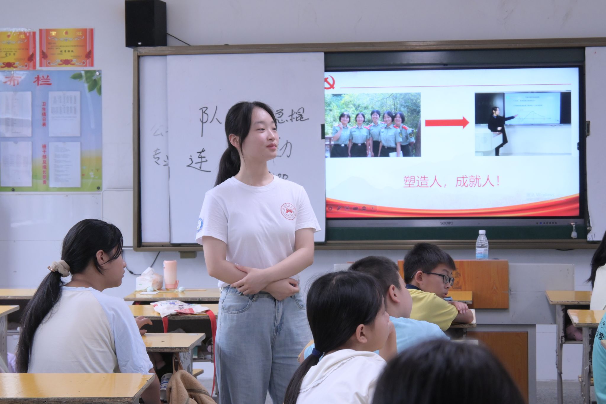 (通讯员 彭璟怡 陈琼芝)7月14日上午,为培养学生的爱国热忱与使命意识,教师教育系“燃情盛夏”队在良田学校开展“从军徽到队徽,做党的红孩子”红色论坛活动。支教组成员担任主讲人。