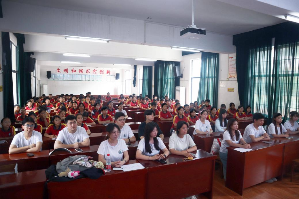 全体肃立,奏唱国歌。实践团成员以粟裕大将名言“生死沉浮寻常事,乐将宏愿付青山”开篇,指出会同县作为粟裕大将故乡,承载着“共和国第一大将”的革命传奇,有着丰富的红色资源。两位主讲人分别以《永不卷刃的战刀:粟裕精神烛照下的教育强国与青年使命》和《松柏云水照青山:在粟裕故里锻造时代脊梁》为主题,结合自身学习实践,对粟裕精神进行时代解读,激励学生传承大将精神,再铸红色荣光。实践团成员带领学生观看粟裕将军的纪录视频,感悟将军“忠于信仰、百折不挠”的赤胆忠诚。