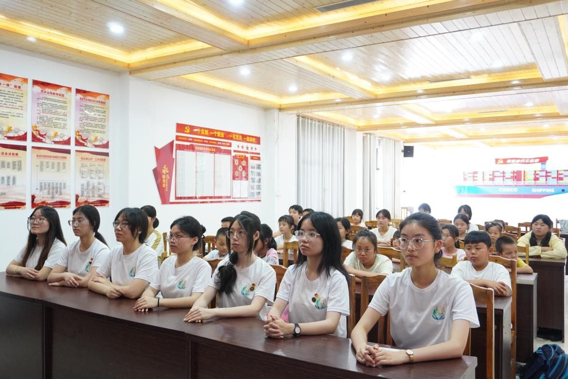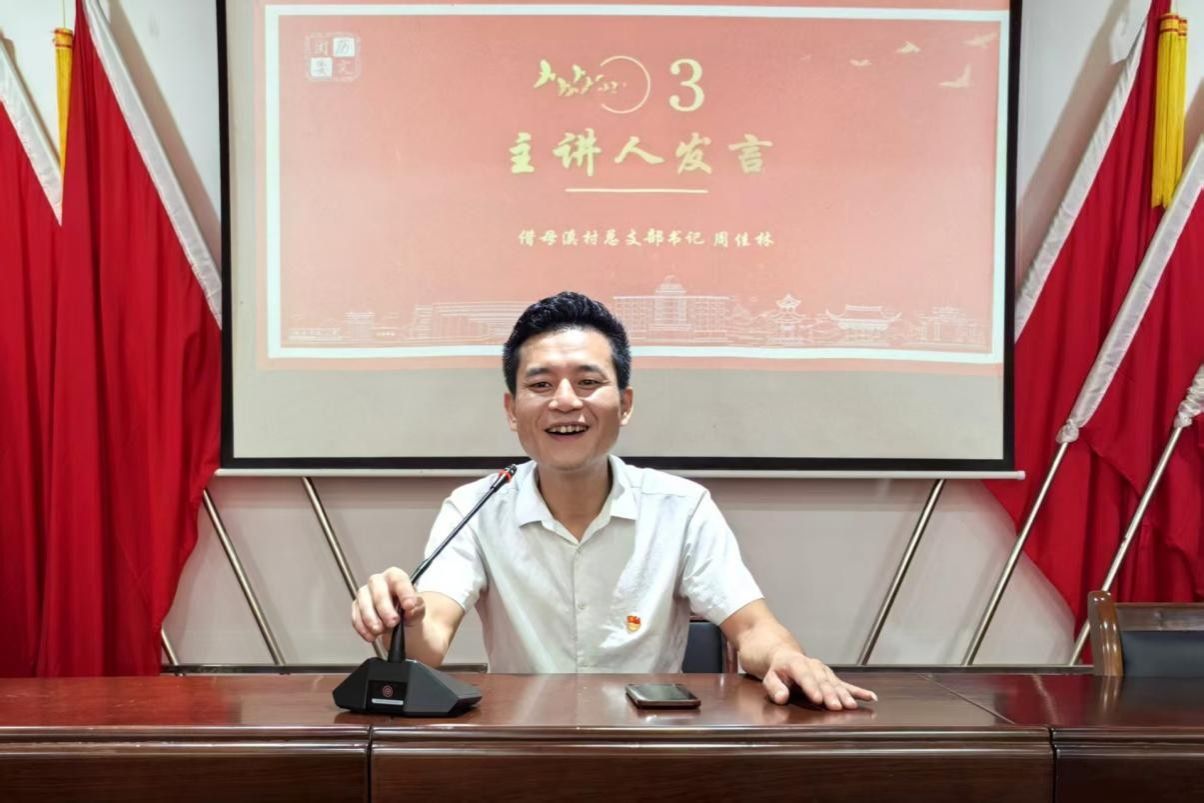 在发言环节中,周佳林对实践团扎根乡村表示感谢,随后通过与活动现场的儿童进行互动来传递红色精神,引导孩子们从小树立爱国意识。随后,两位主讲人分享了实践团在借母溪村进行暑期社会实践中见证的脱贫故事与实干人物事迹,号召大家以谦逊态度学习,让青春在乡村振兴中发挥作用。