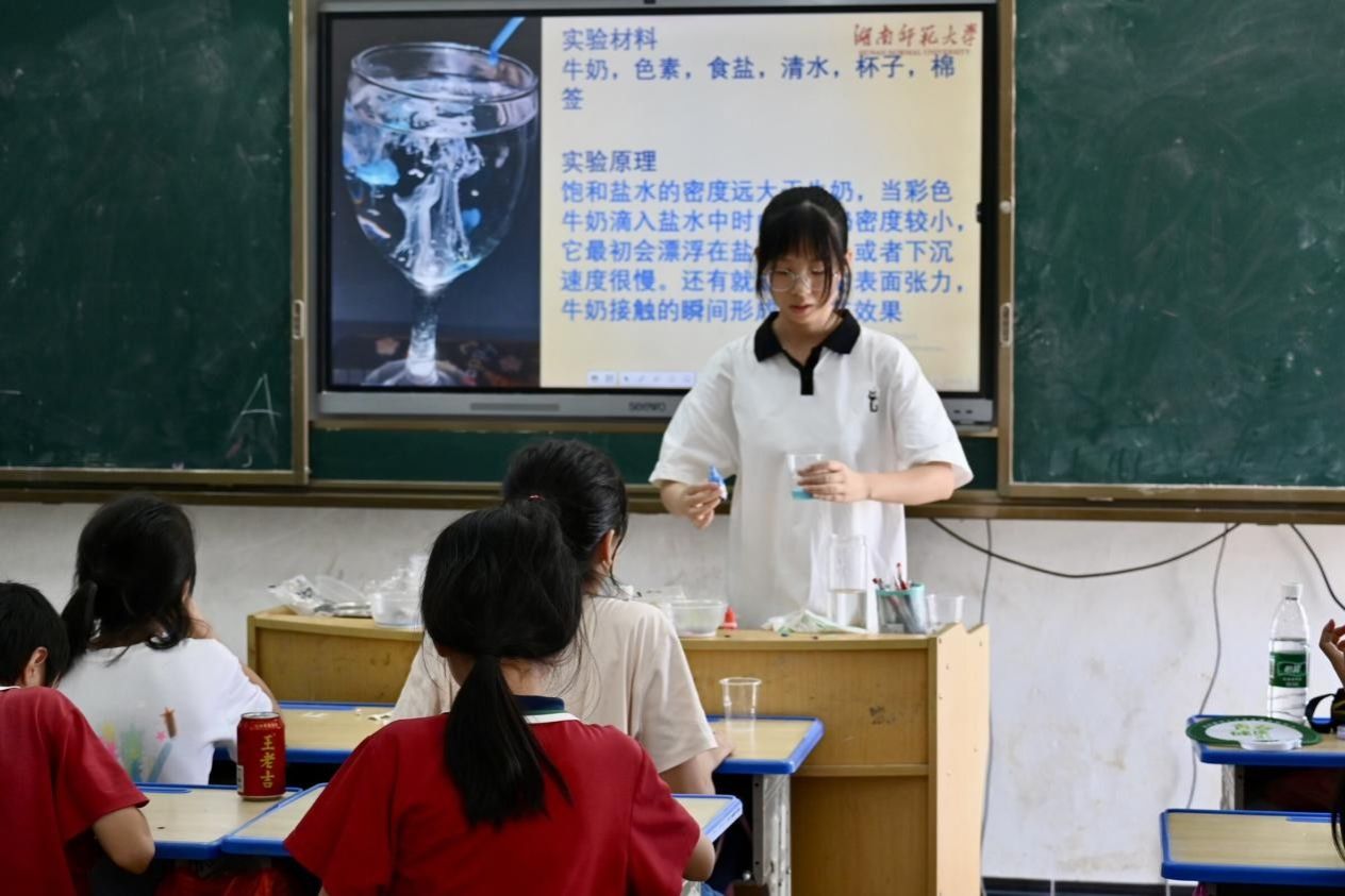 (通讯员 陈怡廷 王国丞)7月16日上午,“祁迹再现”——数学与统计学院赴衡阳市祁东县暑期社会实践团(以下简称“实践团”)于风石堰镇第二中心小学开展趣味科学课。实践团成员罗倩担任主讲人,该校20余名学生参与。