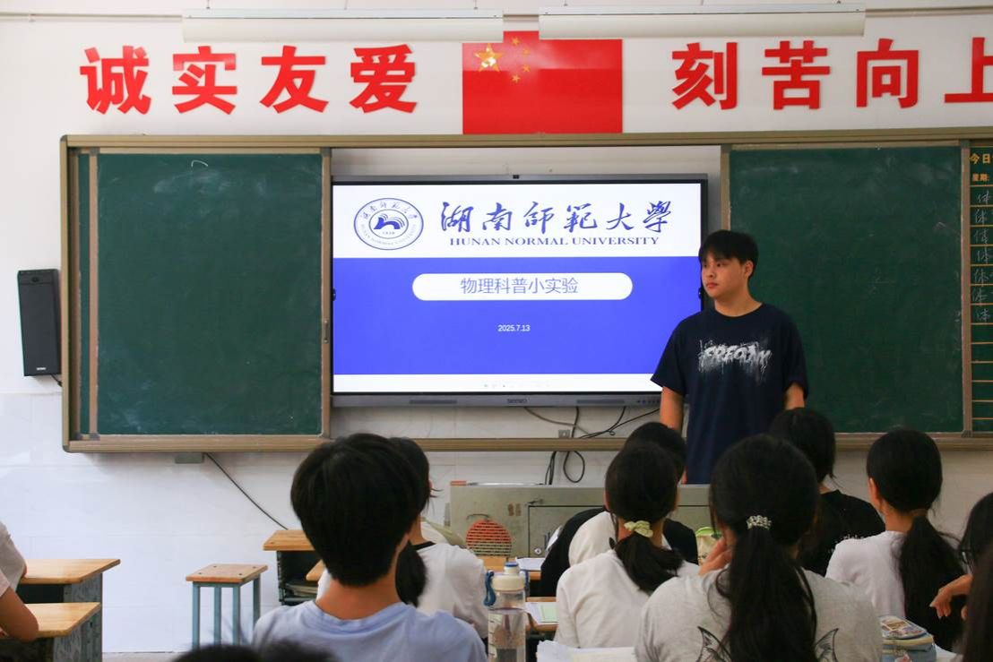 (通讯员 邹仪 张国权)7月13日,物理与电子学院“湘南跃动,青年筑梦”三下乡实践队课程组成员为学生们开展了趣味物理科普实验课程。此课程通过生动有趣的实验,激发学生对物理的兴趣,培养科学思维和实践能力。