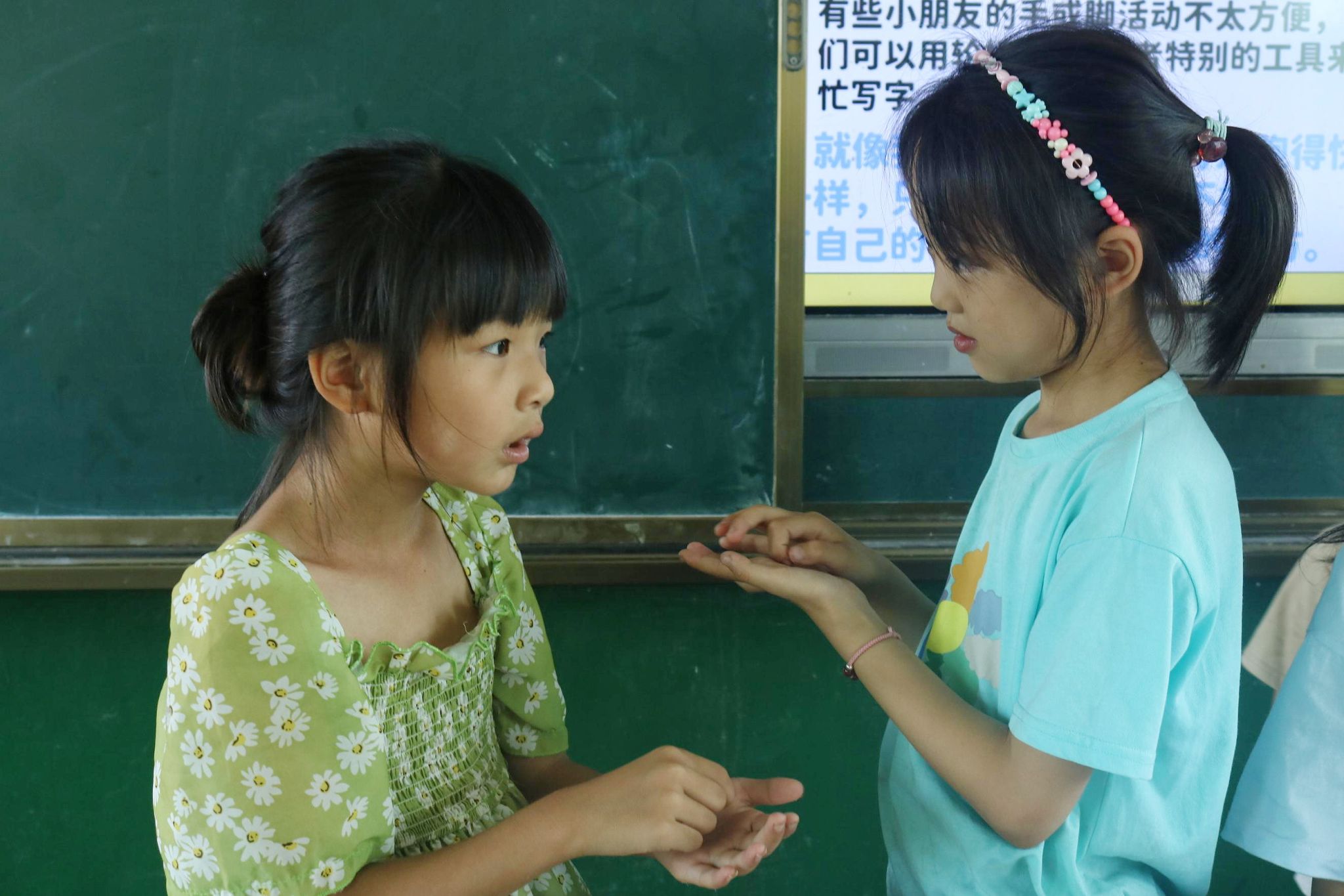 为加深理解,课堂设计了“无声传话”互动游戏。学生们在游戏中体验了仅靠观察动作、表情来沟通的困难,由此理解听障人士在日常交流中可能面临的挑战。游戏体验后,师生共同探讨了与听障人士沟通的有效方法,如保持耐心、放慢动作、清晰口型或借助文字等。