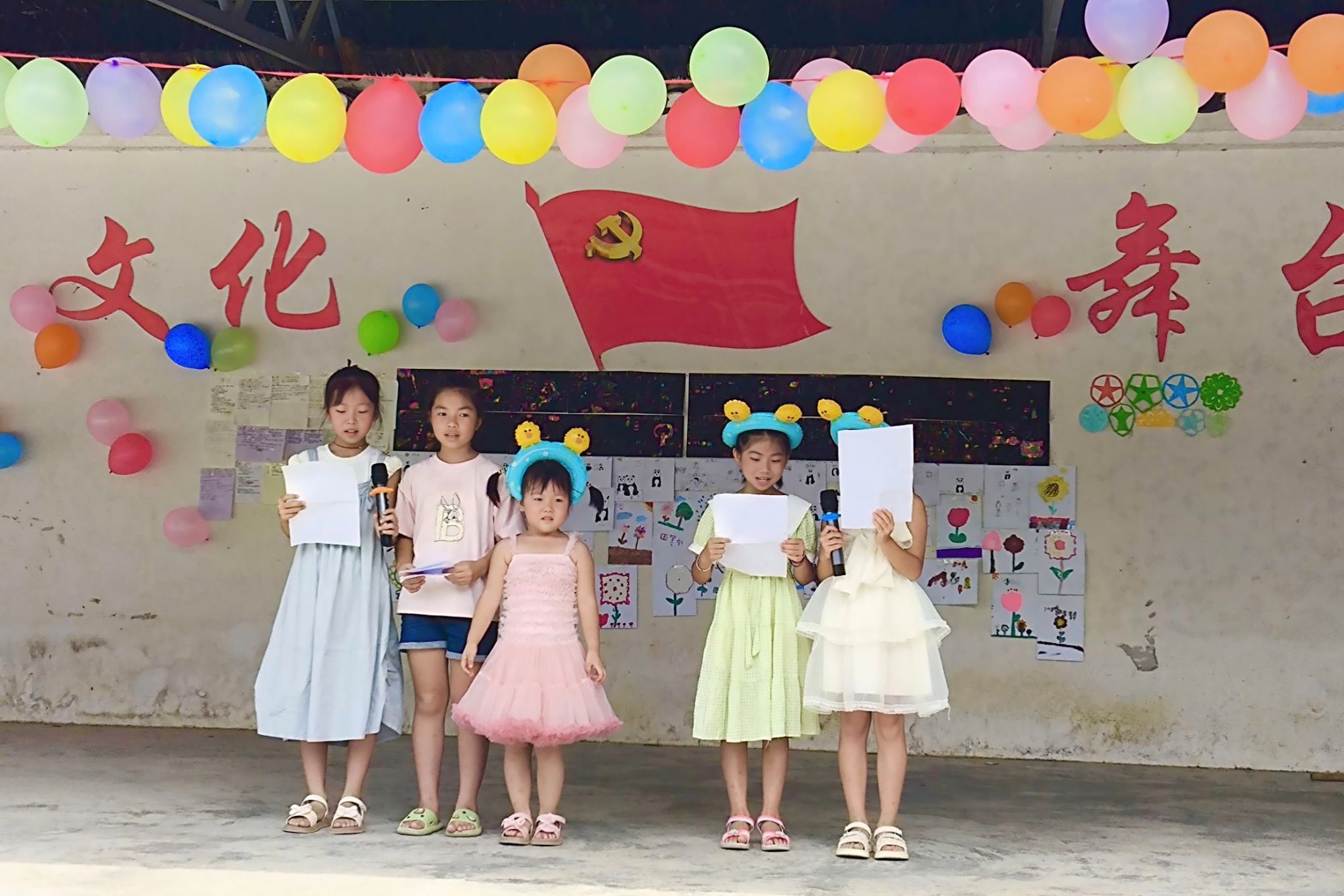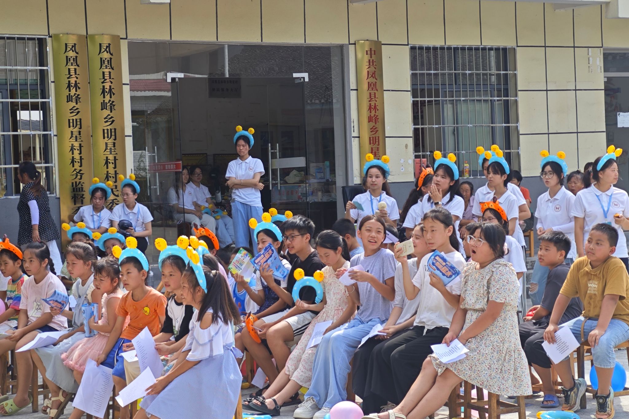 此次闭幕仪式分为安全教育、节目汇演和颁奖三个环节。在安全教育环节当中,实践团成员结合明星村环境特点,用通俗易懂的语言讲解了暑期防溺水、交通安全、用电防火等实用知识,通过情景模拟、问答互动等形式,让孩子们增强安全意识和掌握一定的安全技能。在节目汇演环节当中,学生和实践团成员先后带来了舞蹈《向快乐出发》、合唱《紫荆花盛开》、合唱《小美满》以及太极拳等12个精彩节目,这些节目既融入了实践团支教期间教授的知识,又饱含着孩子们对支教老师的真挚情感。在最后的颁奖环节中,实践团为表现优异的学生颁发了“探索之星”“创意之星”“劳动之星”等荣誉证书及文具礼包,以此肯定学生在暑期活动中的积极表现。