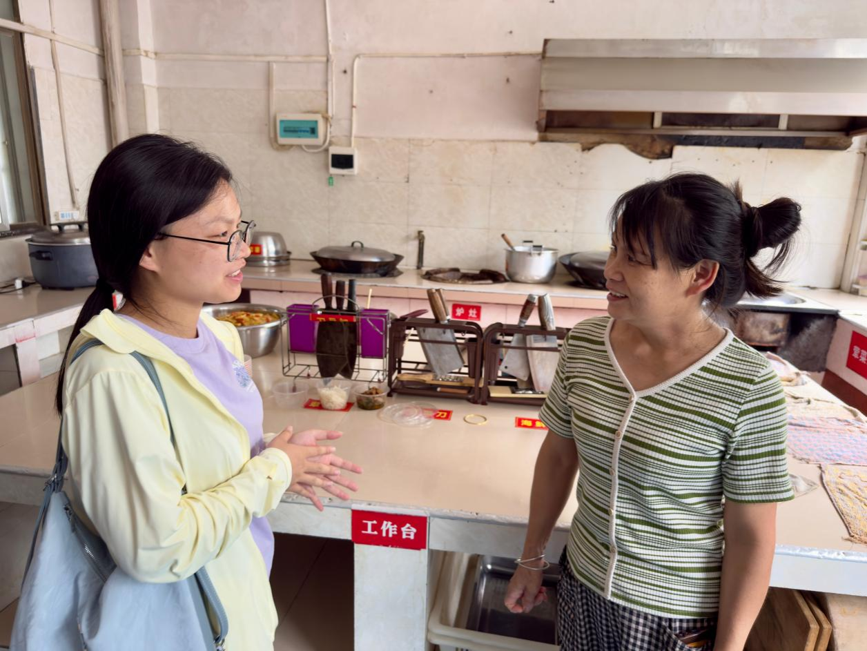 为摸清运营实效,实践团成员跟随曹桂珍走进老人宿舍、厨房及娱乐活动中心。大家一边察看硬件设施,一边与在场老人交谈,认真记录借母溪村特殊老人群体的脱贫现状及幸福苑运营细节,为调研收集一手资料。交流中,成员们注意到老人们对膳食搭配、活动安排的认可,更直观感受到养老服务提质带来的变化。