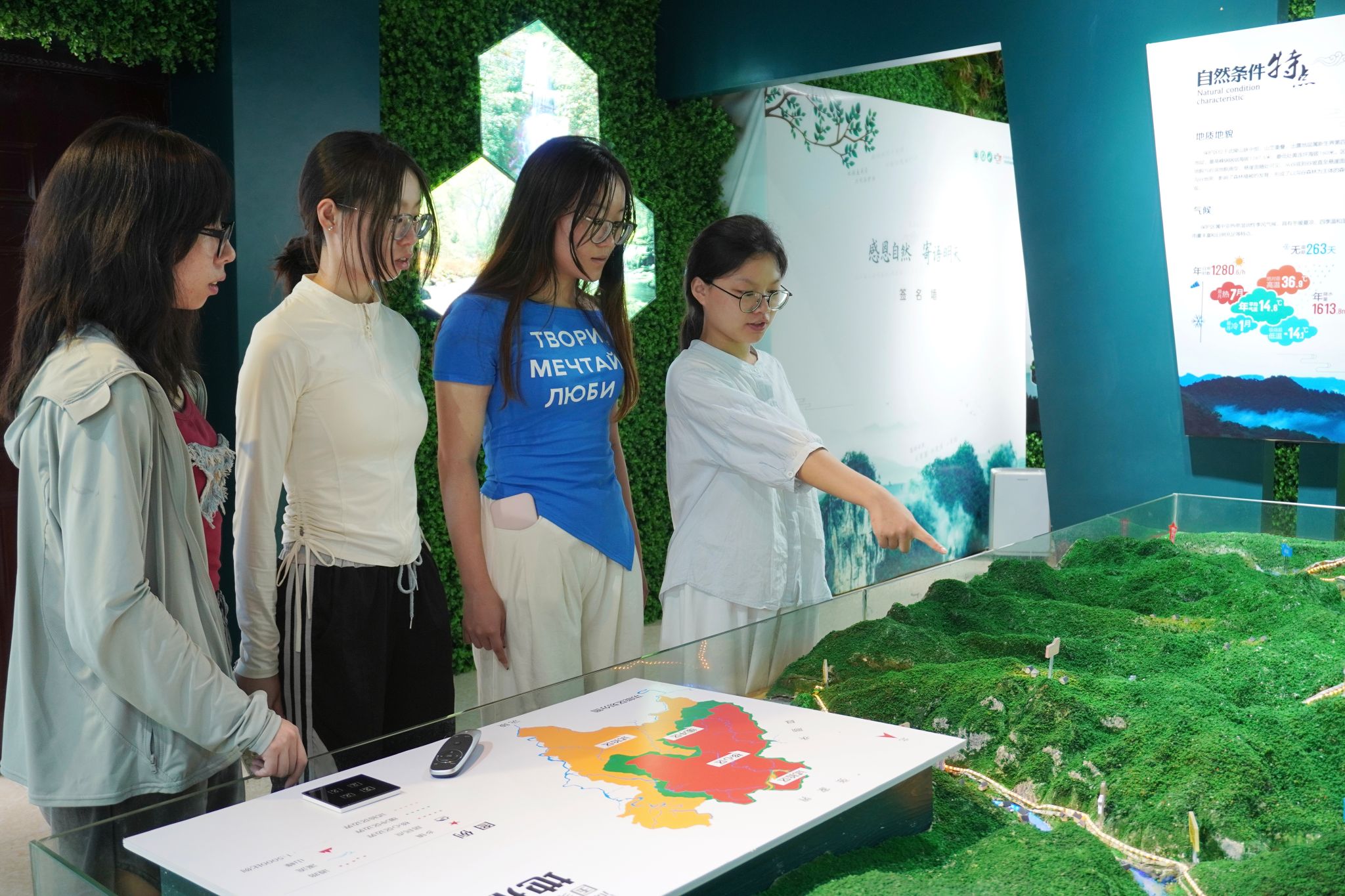 在获得工作人员许可后,实践团成员参观了湖南省借母溪国家级自然保护区科普宣教中心。成员们观察地形沙盘,翻阅保护区资料,从数据层面认识借母溪自然保护区作为“生物多样性宝库”的生态价值,同时查看展厅内的动植物标本,直观感受生物多样性保护的重要意义。