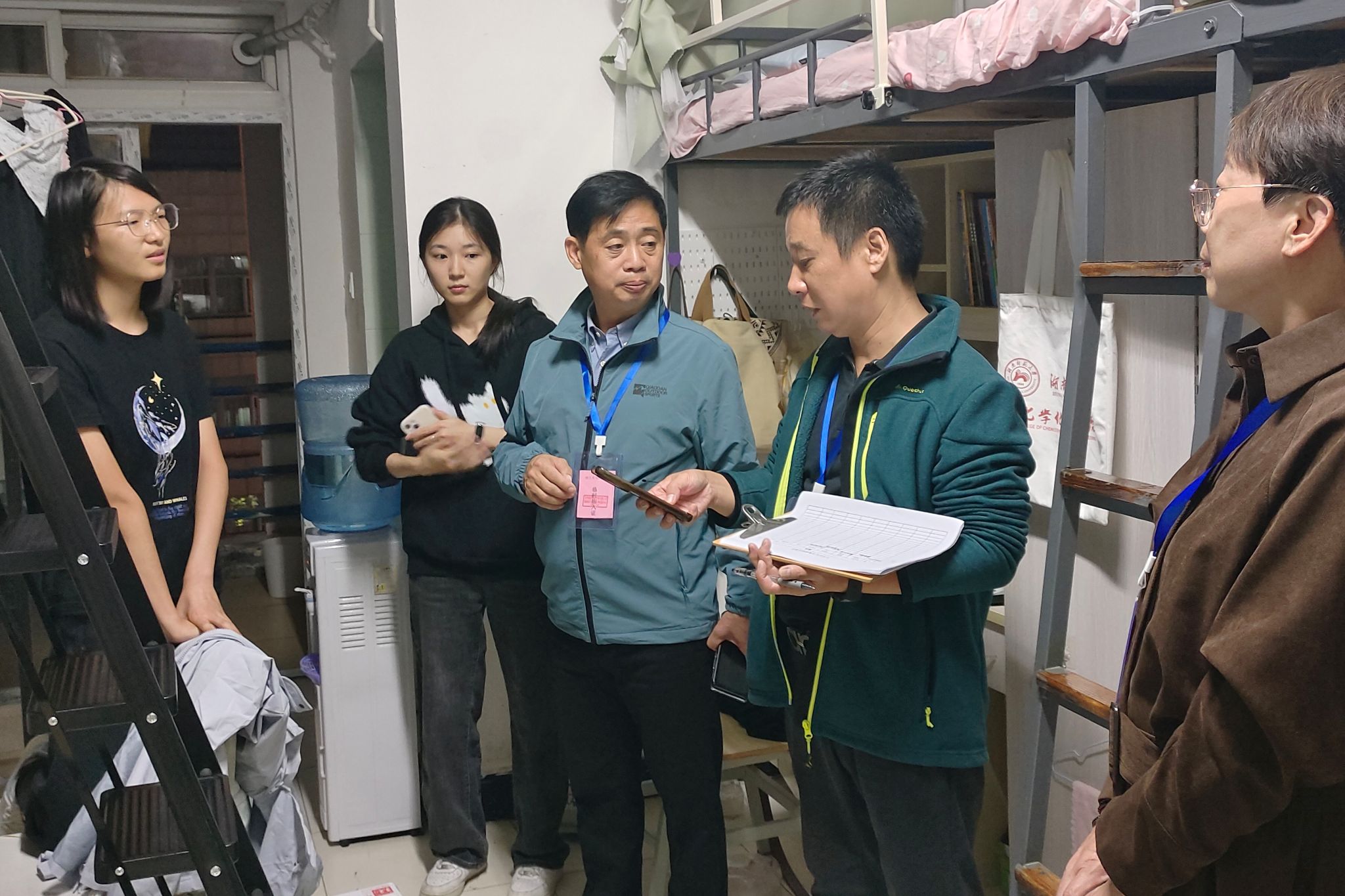(通讯员 姜雨双)9月24日晚,为助力新生快速融入校园生活,营造安全舒适的住宿环境,天马园区老师与物业工作人员走进化学化工学院2025级新生宿舍,开展“校区宿舍与物业管理人员进寝室温馨服务”走访活动。
