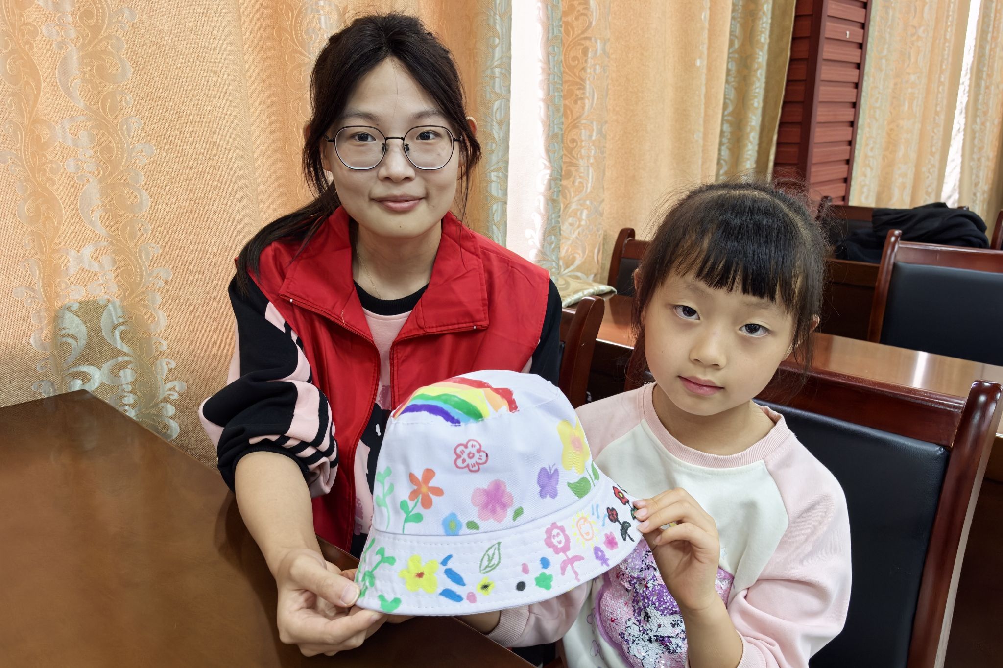 在环保宣讲环节,志愿者结合具体案例,围绕节水节电、垃圾分类等日常生活行为,为青少年讲解绿色生活知识,阐述环境保护与个人生活之间的联系,以增强其积极参与环保行动的自觉意识。宣讲结束后,志愿者指导青少年在帽子上绘制树木、云朵、飞鸟等自然元素,鼓励他们将美好家园的愿景与环保理念融入创作之中。活动过程中,志愿者与青少年持续交流,在解答疑问的同时,进一步倡导“爱护环境、从我做起”,使环保理念通过艺术形式得以传递。