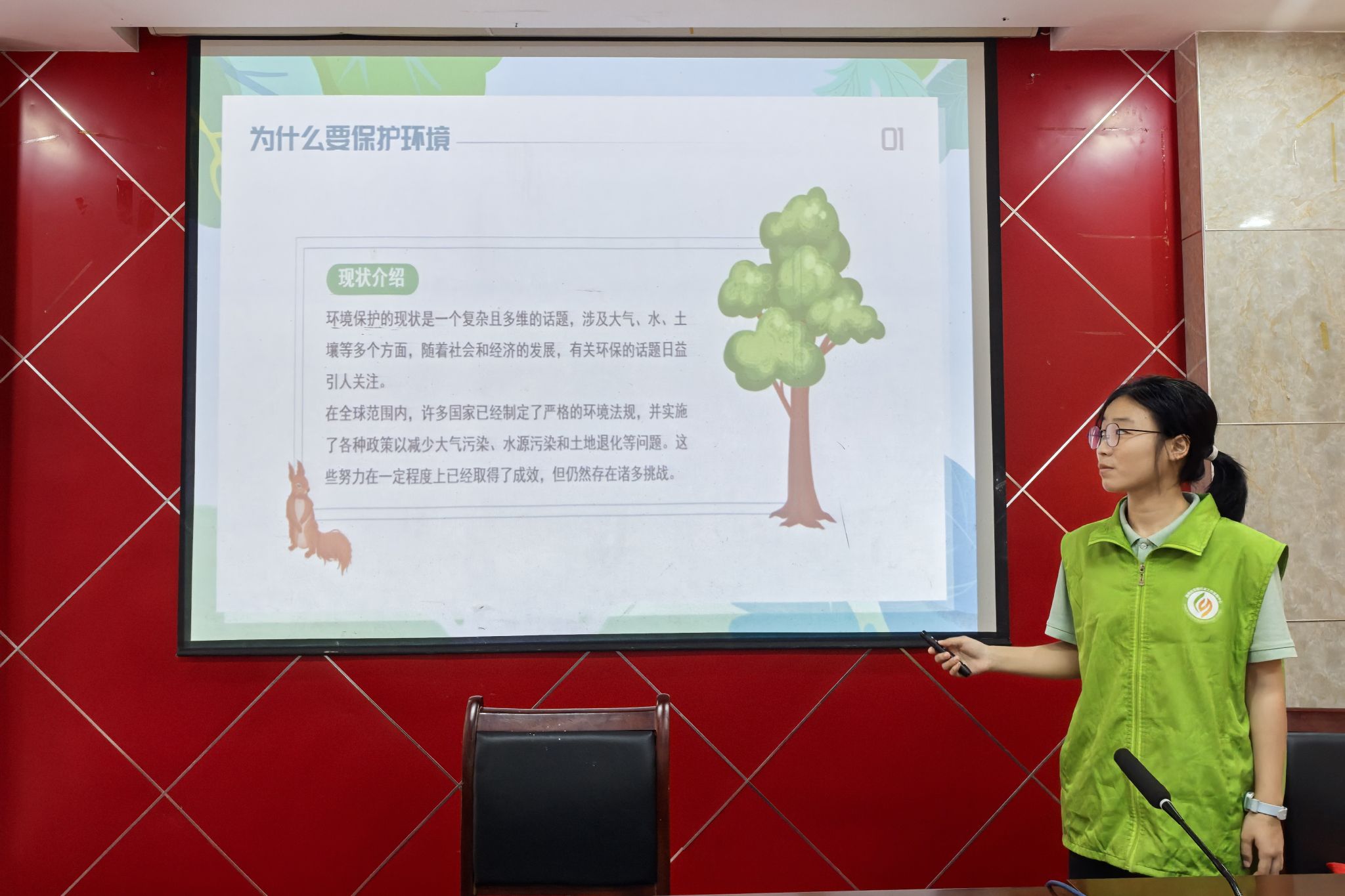 主讲人进行关于绿色生活知识的生态主题宣讲