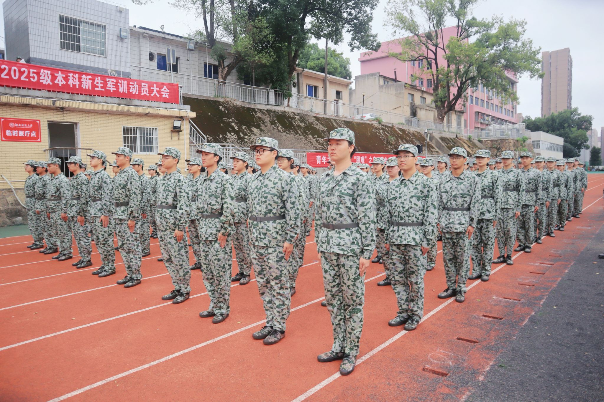 (通讯员 林涵钰 李昊)10月13日,文学院在张公岭校区田径场开展2025级军训活动。学工办主任、2025级辅导员周灿,2025级辅导员唐清华,2025级各班助理辅导员陪同,2025级全体新生参加。