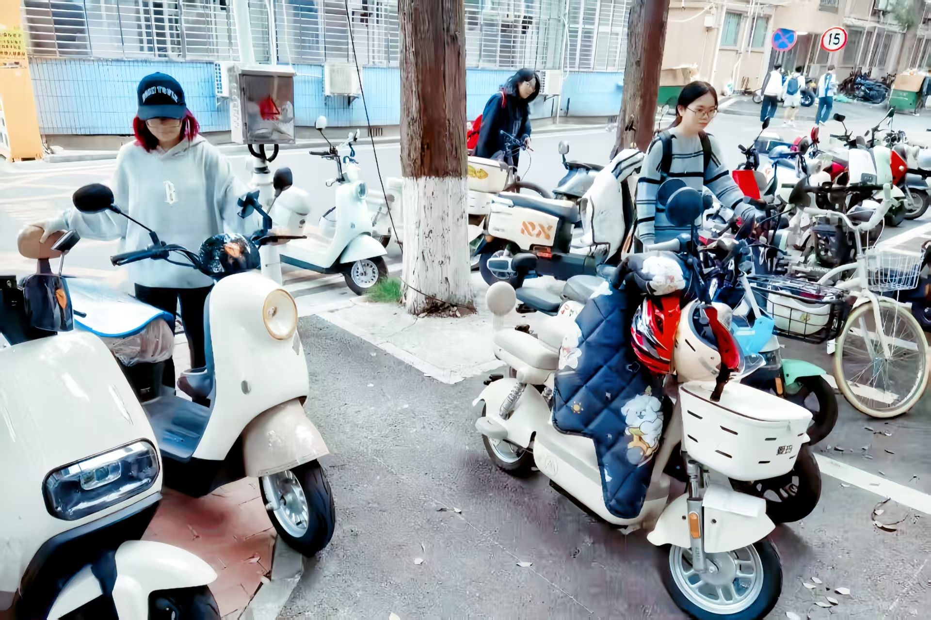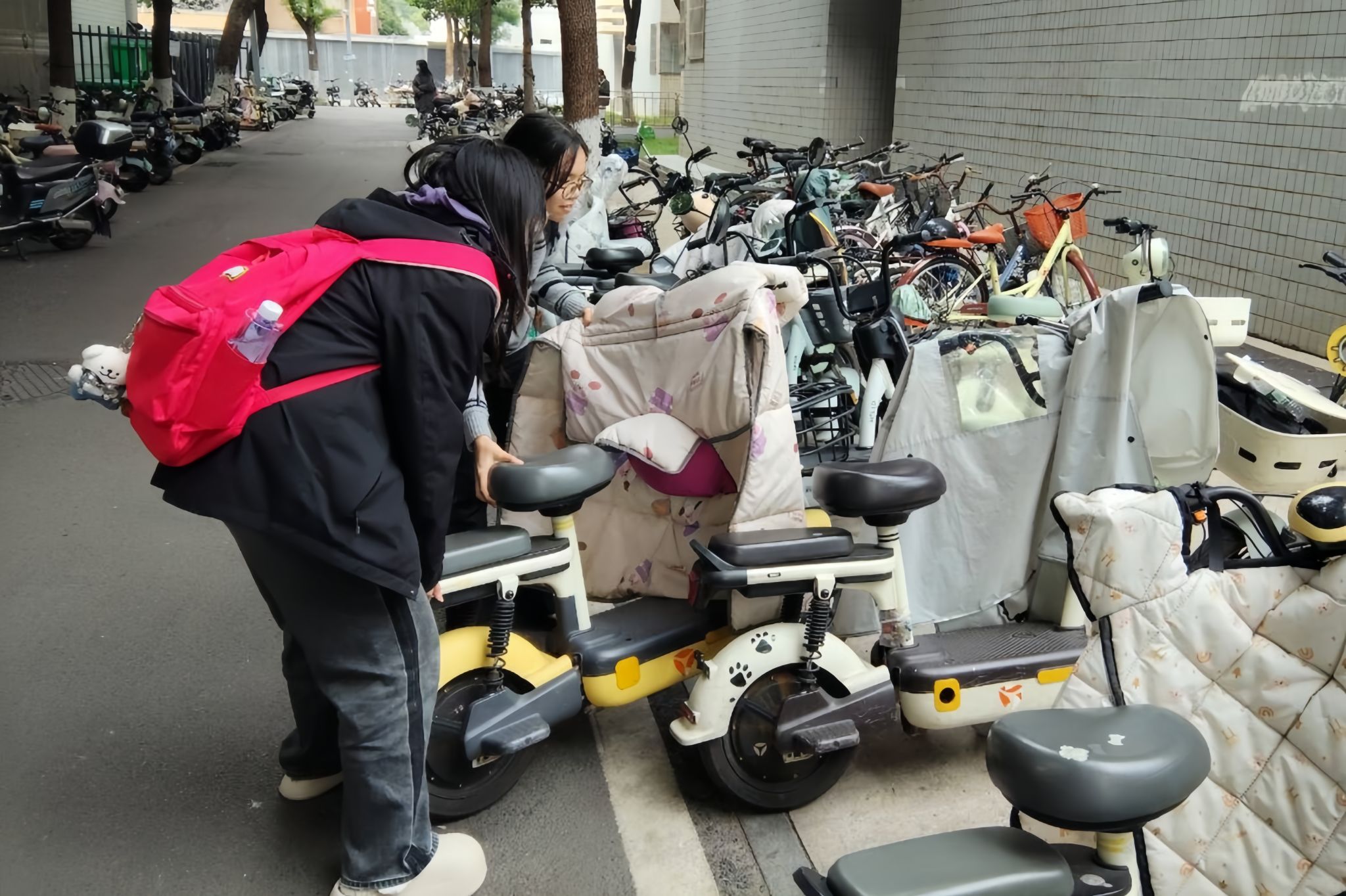 志愿者在将电瓶车规范摆放