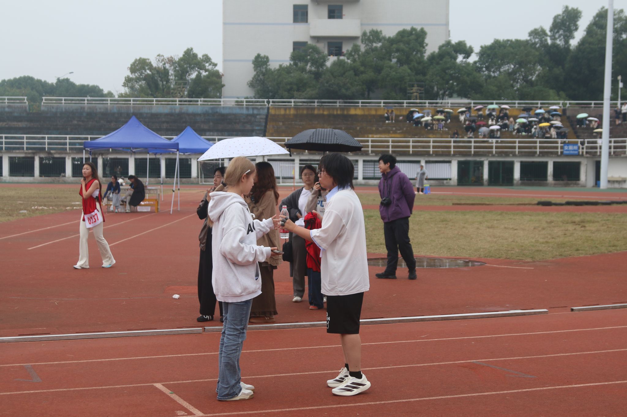 当天赛事包括多个田赛和径赛项目。赛事期间,公共管理学院(以下简称“公管院”)文化体育部(以下简称“文体部”)部门负责人、志愿者负责人带领八位志愿者分工协作,有序组织参赛选手完成检录并引导至相应比赛场地,助力了赛事流程的顺畅运行。赛后,志愿者为运动员准备了温水和姜茶,积极做好后勤服务。