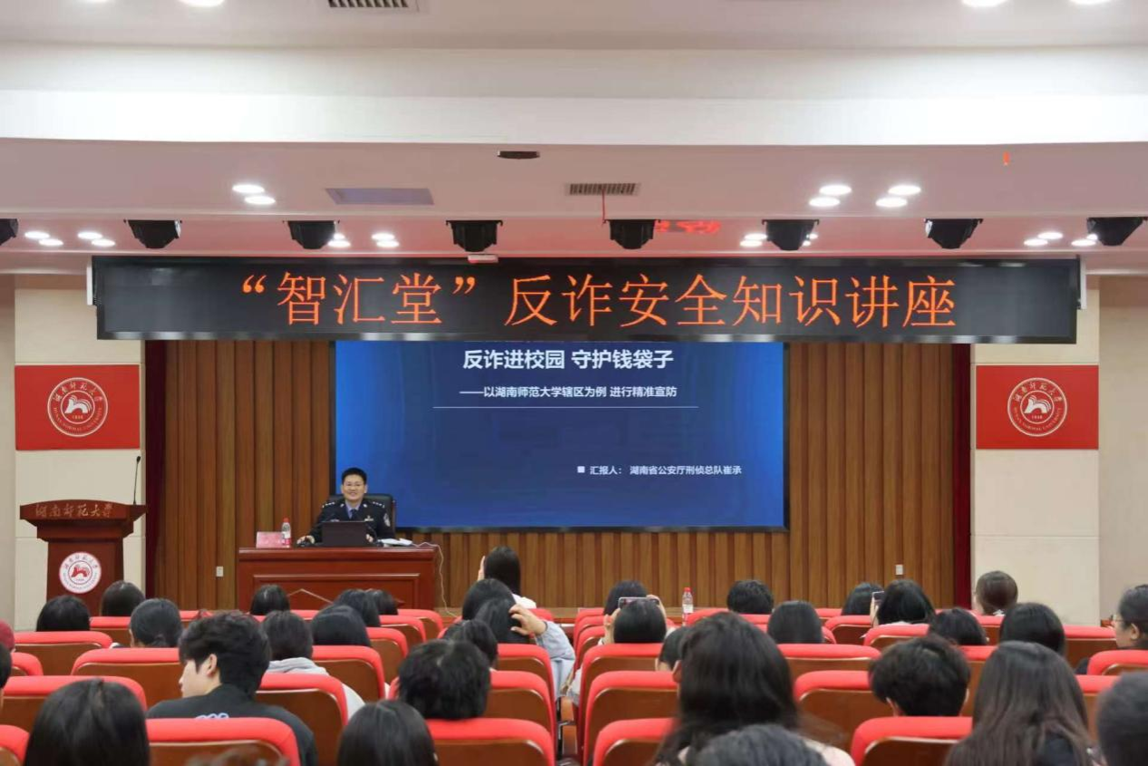 (通讯员 贺紫依 张宇鸣 杨雅甄)10月29日晚,太阳成集团tyc“智汇堂”反诈安全知识讲座于中和楼129报告厅举办。省公安厅刑警总队反电诈中心崔承警官担任主讲,湘江新区刑侦副大队长唐贝受邀出席。
