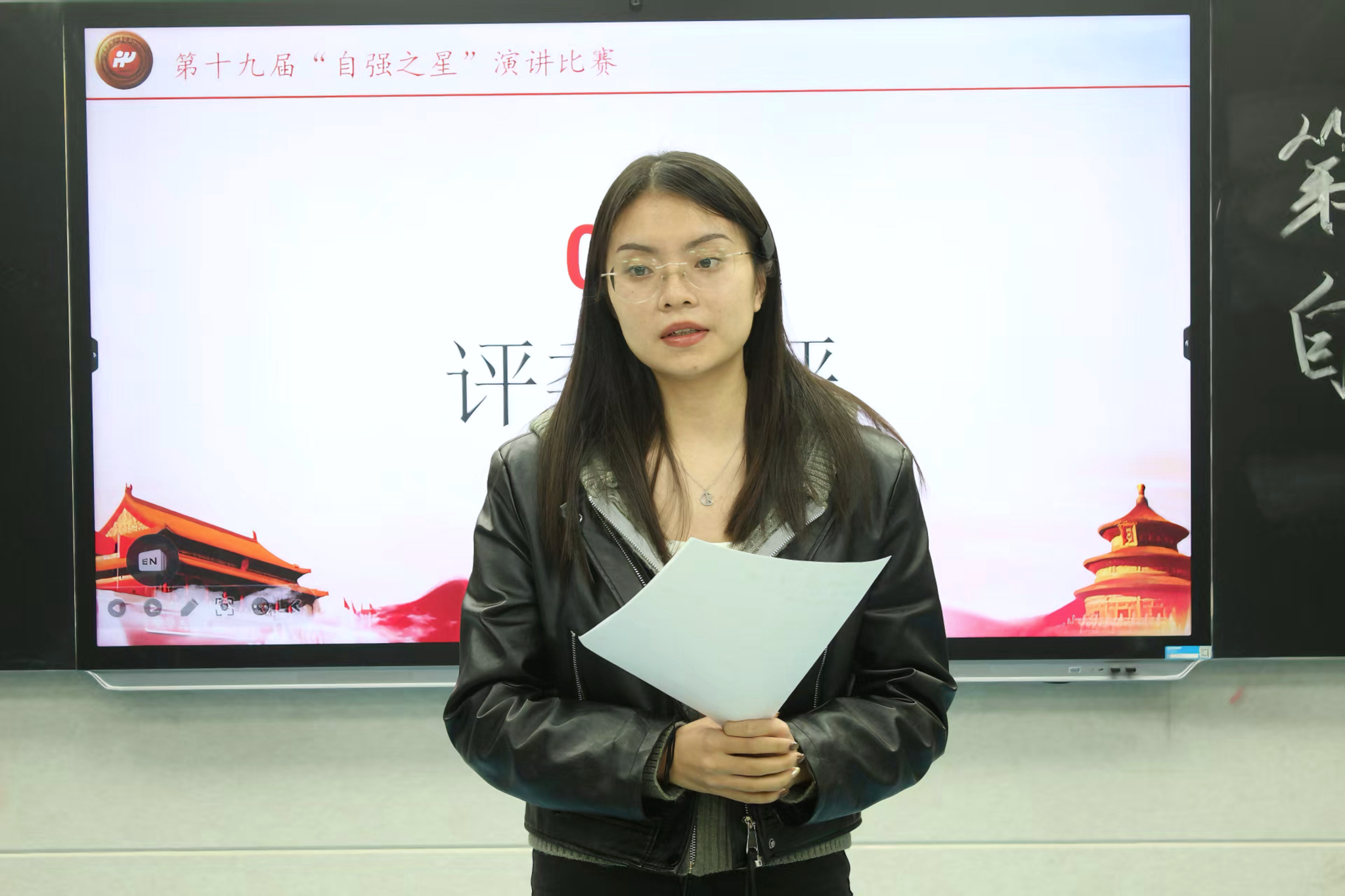 此次演讲比赛以“执自强之笔,书成长华章”为主题,分为选手演讲与评委点评两个环节。在选手演讲环节中,二十六位选手按顺序上台,展示自己的自强故事。评委们根据选手的演讲内容、演讲技巧、精神风貌和肢体语言进行综合评定,现场打分。