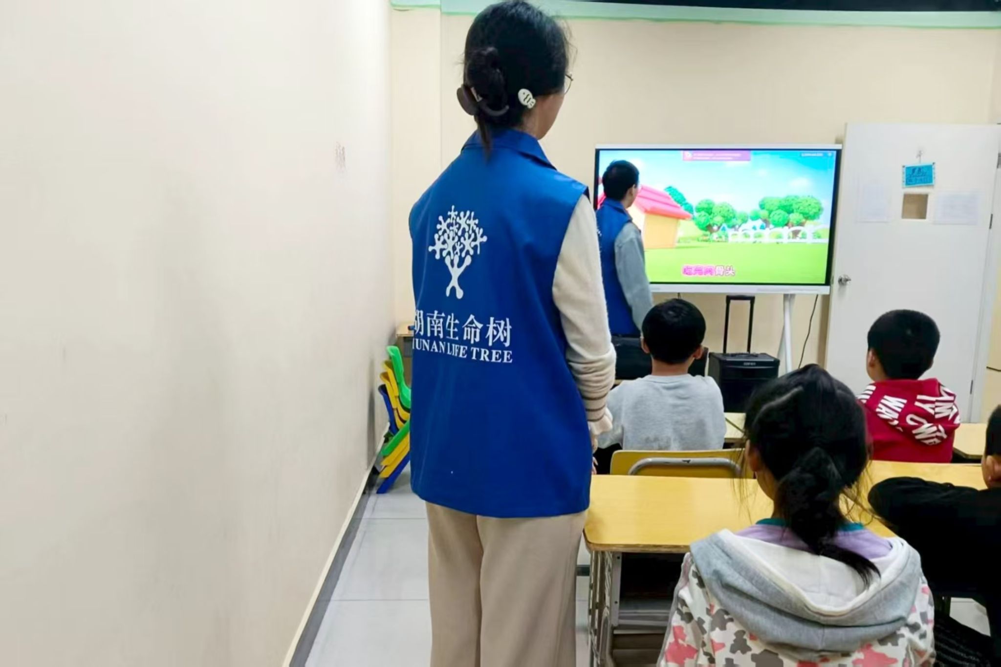 此次活动共派出6名志愿者,每位志愿者对接一位孩子。志愿者陪孩子们上音乐课,并协助老师引导孩子跟唱儿歌、学习简单舞蹈动作,鼓励他们在音乐中释放情感,积极参与表达。课间,志愿者们带着各自负责的孩子休息、上厕所,保证孩子的安全。