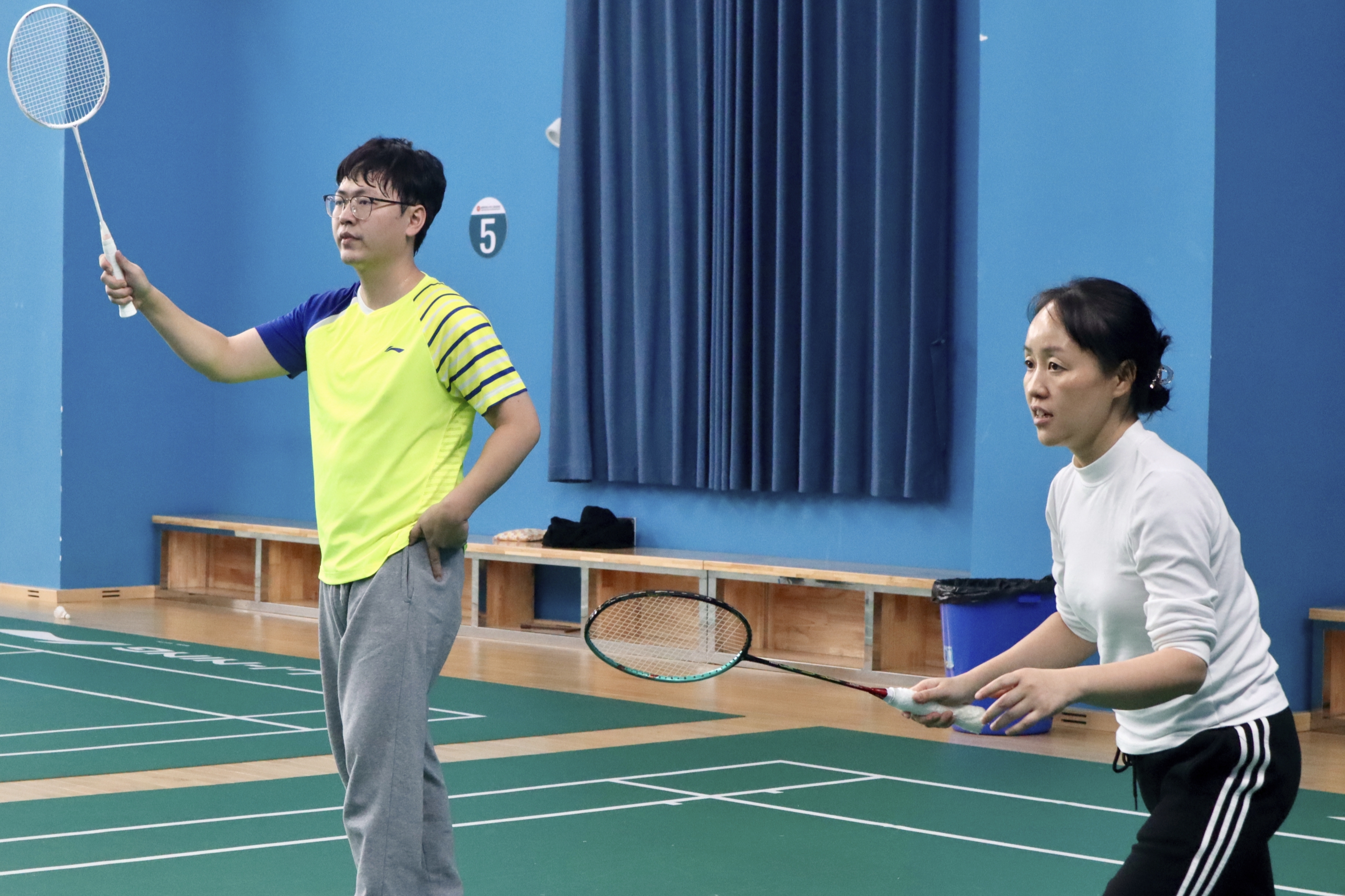 此次赛事涵盖男子双打、女子双打、混合双打及学院内部对抗赛四大项目,且各项比赛采用循环赛制同步开展。两院教职工自主组队并通过现场报名的方式,积极参与各项比拼。