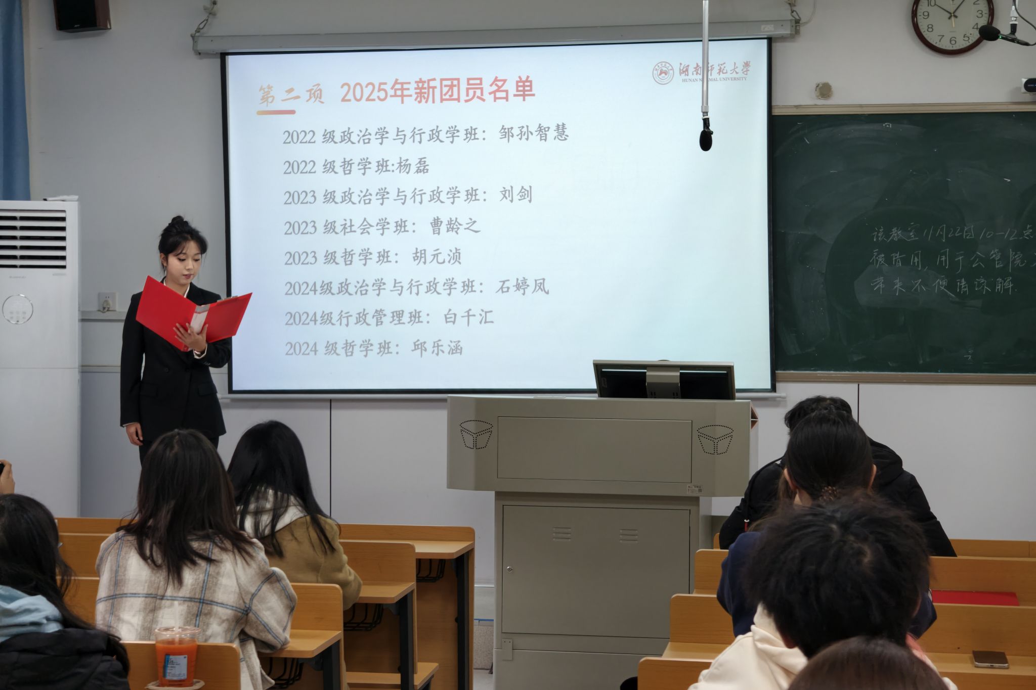 主持人宣读新团员名单