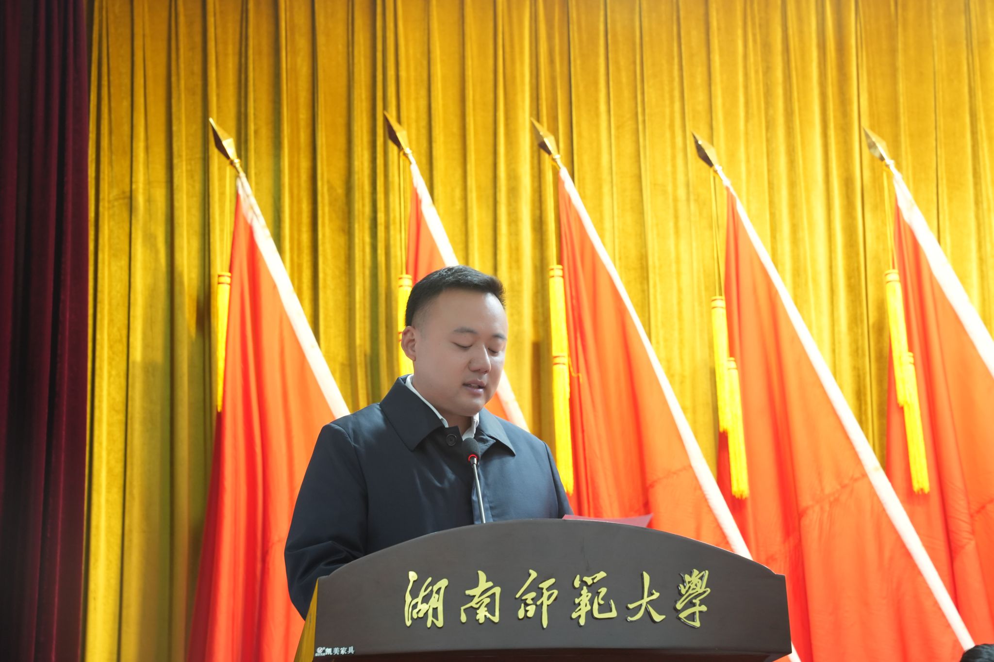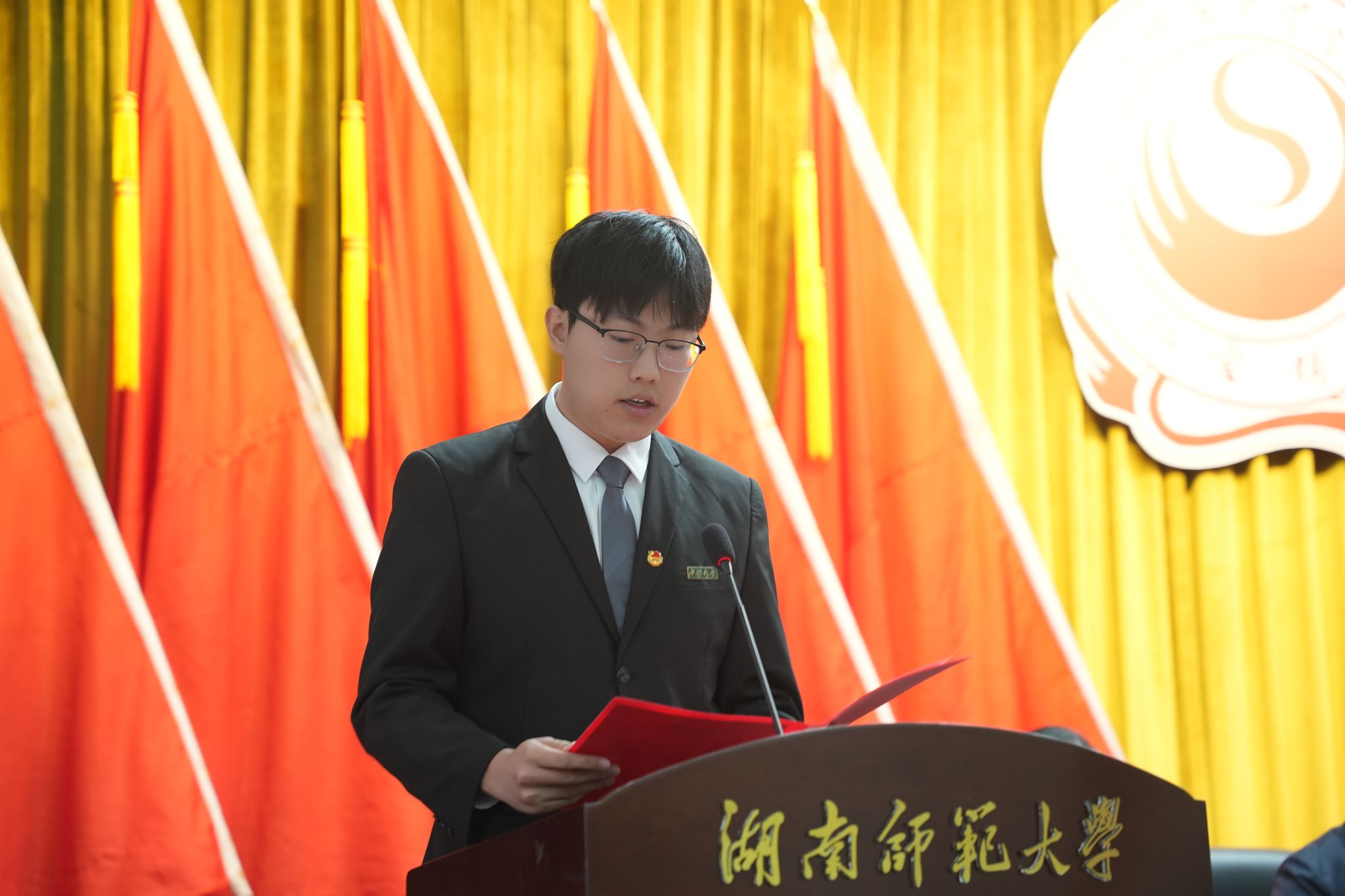 团省委学校部三级调研员、省学联副秘书长周帆宣读湖南省学生联合会批复