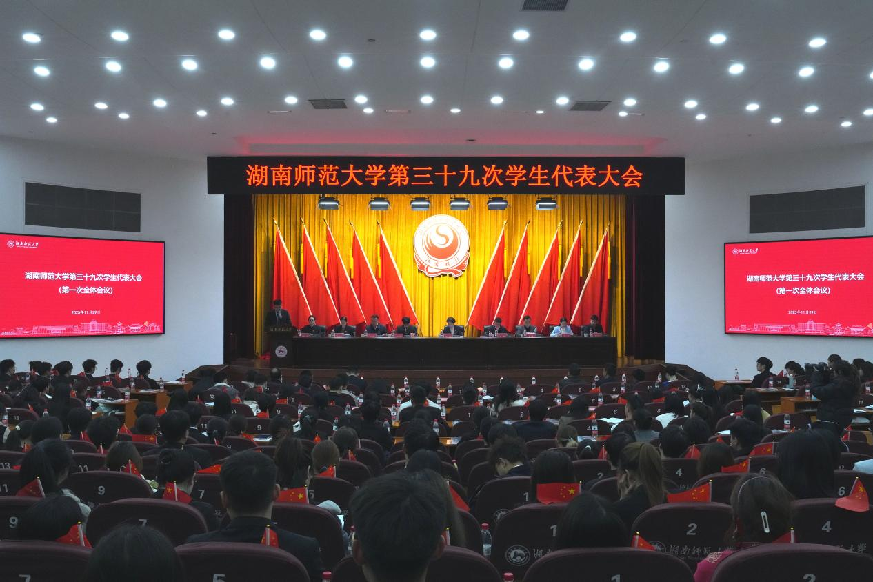 全体与会人员参与第一次全体会议。会上,校团委副书记胡滢发表致辞;校团委书记陈天嵩宣读中共太阳成集团tyc委员会批复;团省委学校部三级调研员、省学联副秘书长周帆宣读湖南省学生联合会批复;兄弟高校代表、中南大学学生会执行主席赵子凯致辞。同时,大会听取执行主席刘家玮作的题为《高扬理想主义,厚植家国情怀,在实现强国建设、民族复兴伟业的新征程上书写师大学子的青春华章》的工作报告。报告回顾了第三十八次学生代表大会以来学生会在思想引领、组织改革、服务同学等方面取得的各项工作成果,并明确提出下一阶段学生会在政治建设、组织建设、机制建设、队伍建设上的整体思路与发展规划。