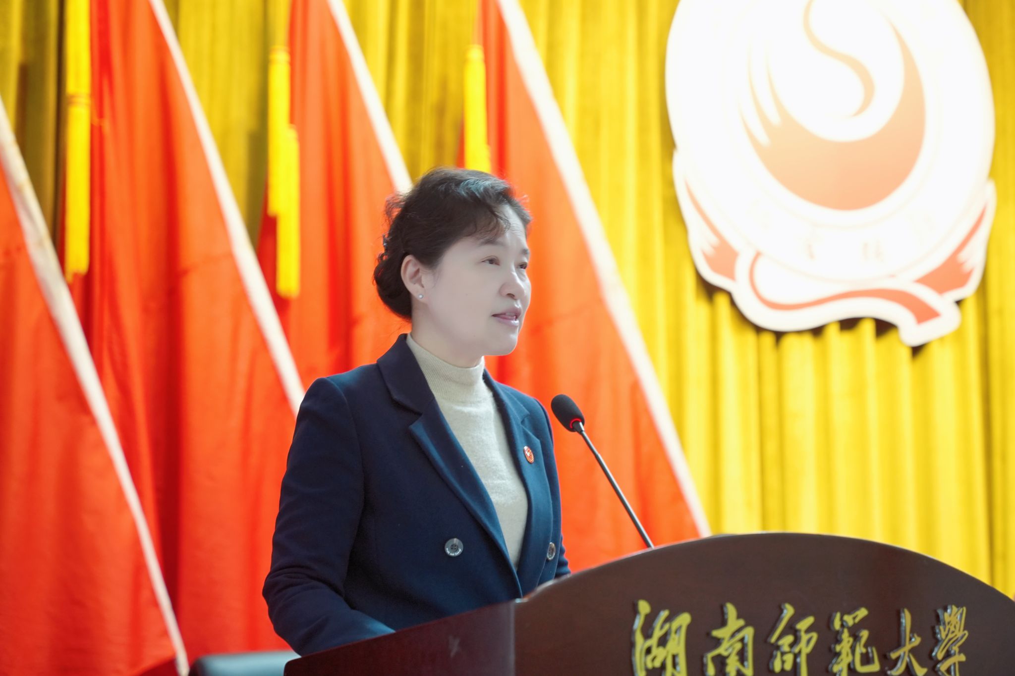 会议伊始,段巍代表学校党委向大会的召开表示热烈祝贺。她充分肯定了学生会在服务同学成长、优化学风建设、维护学生权益等方面的重要作用,并提出三点希望:希望同学们“肯知足”,在服务奉献中坚守初心,珍视信任、踏实成长;也要“知不足”,在反躬自省中追求进步,倾听心声、改进服务;更要“不知足”,在改革创新中勇担使命,突破定势、引领风气,期待新一届学生会继续扎根同学、务实作为,团结带领广大同学共同书写新时代的青春篇章。