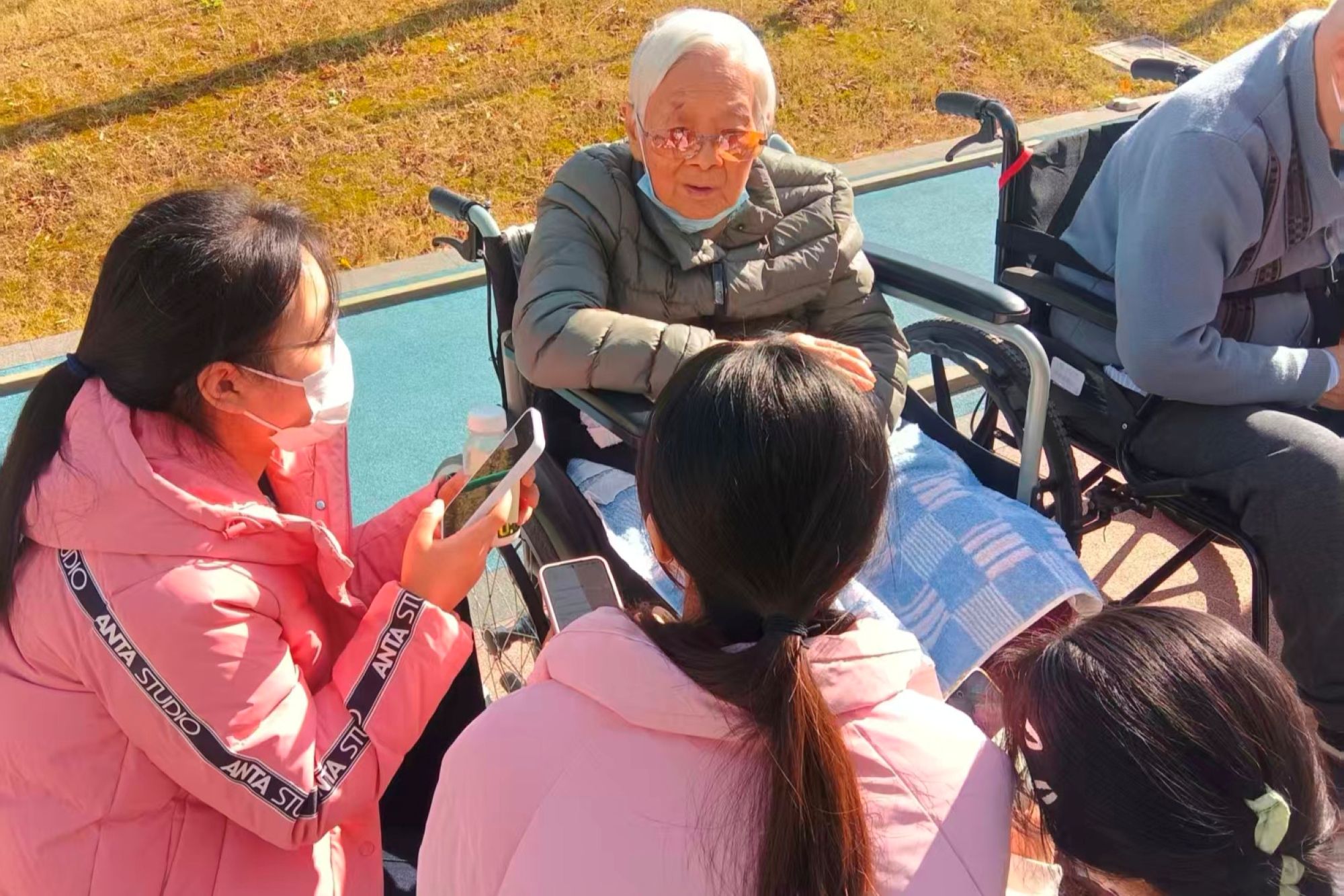 老人和志愿者交流互动