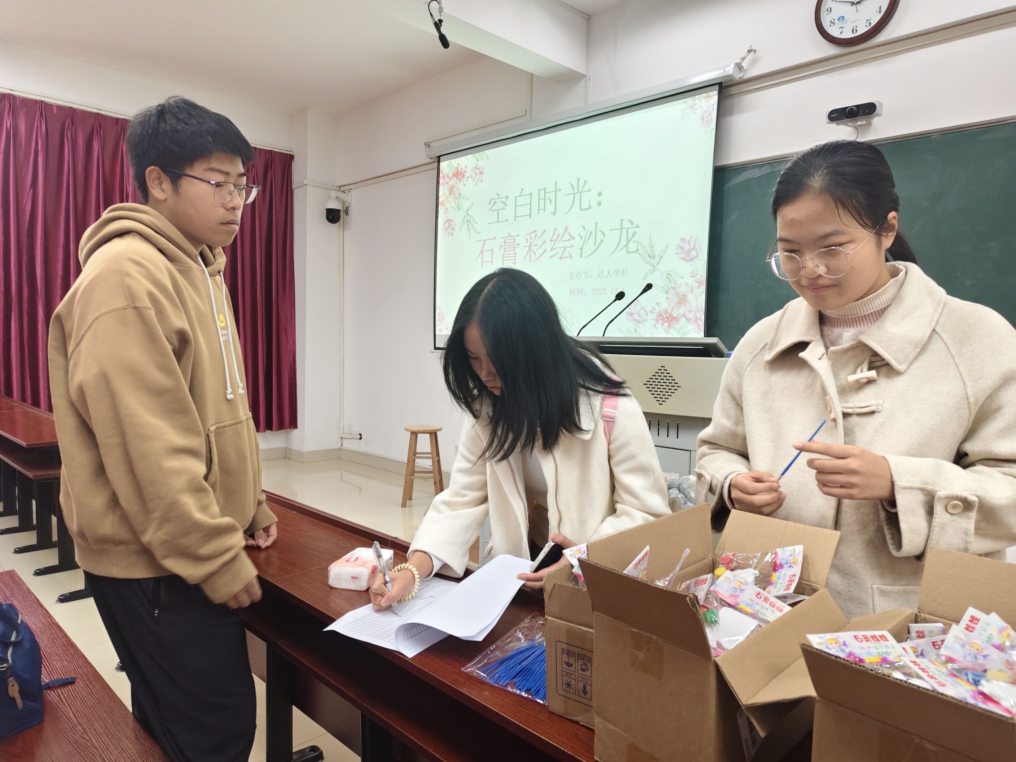 (通讯员 刘家萱 陈璁润)12月6日下午,生命科学学院达人学社联合小微公益社等多个社团,于生科院3号楼B107教室举办“空白时光 石膏彩绘沙龙”活动。生科院各协办社团成员参加此次活动。