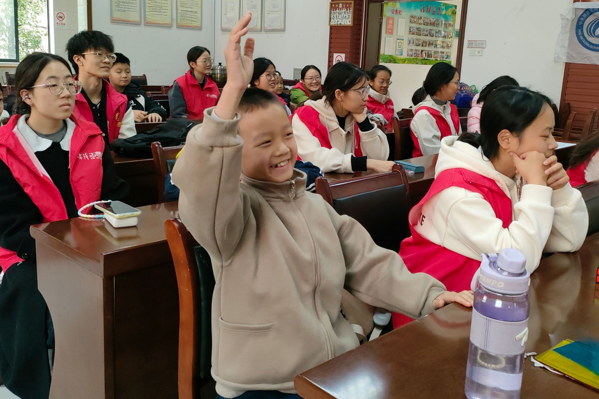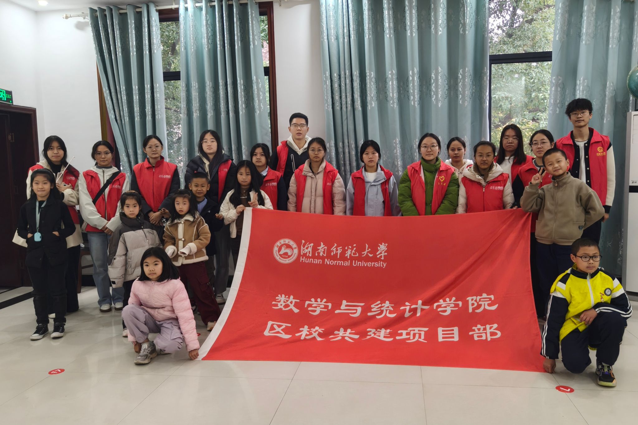 活动结束后,志愿者和小朋友手持部旗进行合照