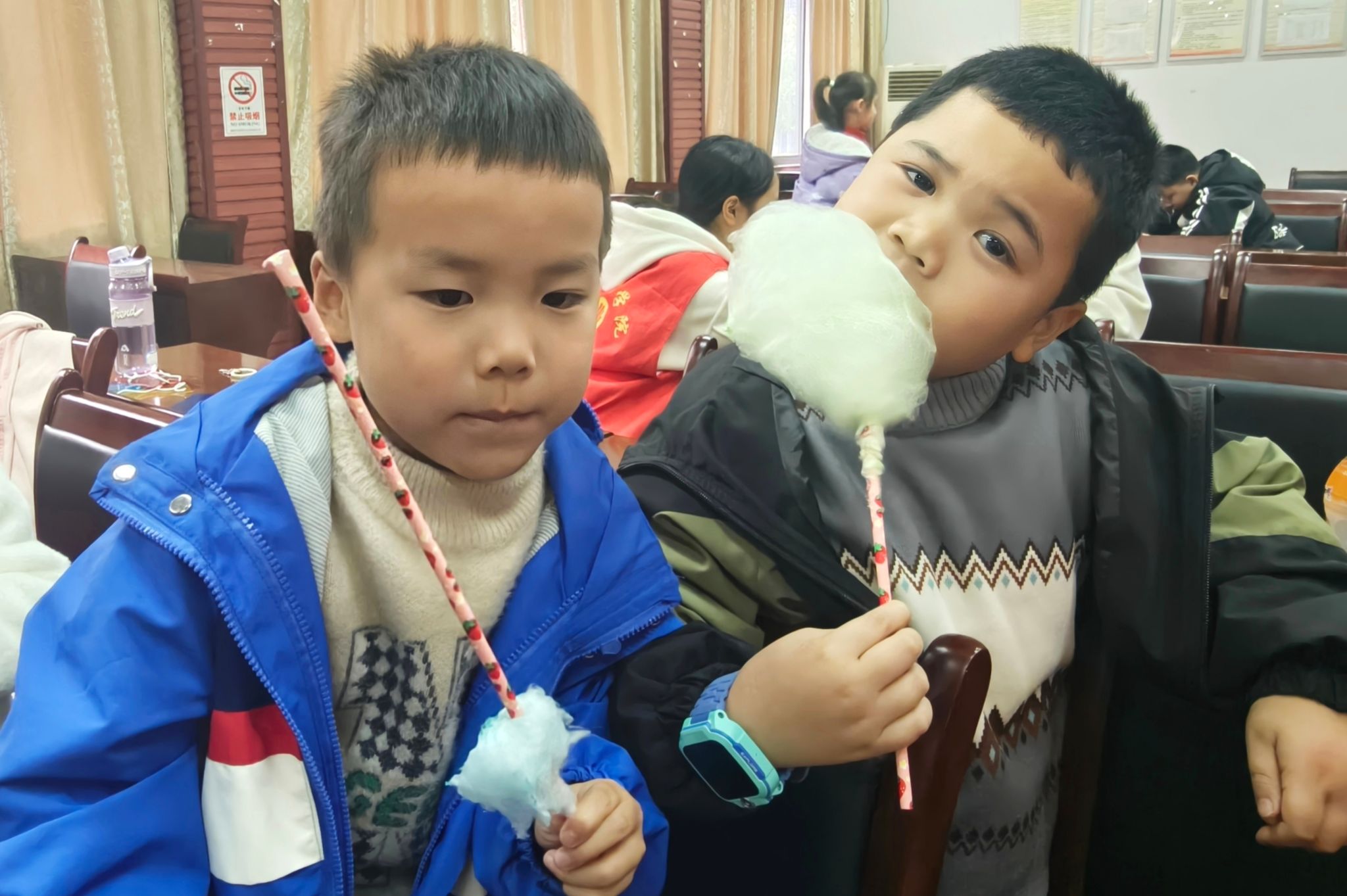 小朋友们一起品尝着亲手做的棉花糖