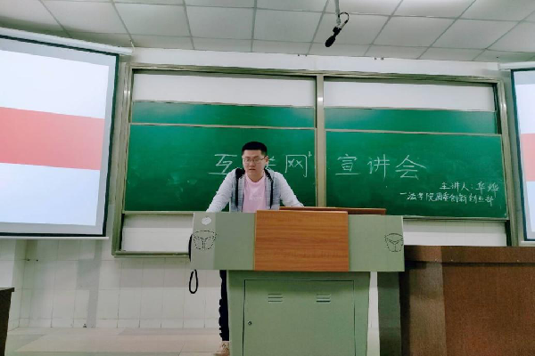 活动伊始,华烨对“互联网+”的基本概念和此次比赛的比赛要求做了详细介绍。他指出,“互联网+”就是利用互联网平台和信息通信技术,把互联网和各行各业结合起来,在新的领域创造一种新的生态。之后,他还根据自身参与比赛的经历,讲述了如何做成功一个项目。最后,他鼓励同学们积极参加“互联网+”大赛,并祝大家能够取得好成绩。