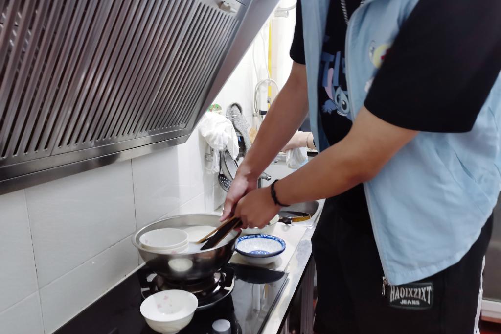 活动当天上午,志愿者们首先来到李阿姨家中,帮忙打扫了厨房与洗手间,面对热情的小志愿者们,李阿姨一直微笑表示感谢。在聊天中了解到李阿姨使用手机有疑惑后,志愿者们主动提出帮忙调试手机,解决李阿姨的生活困难。随后又陪李阿姨一起做晚饭和清洗碗筷,厨房里欢声笑语不断.