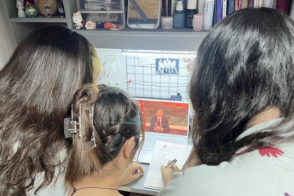 同学们正在观看习近平总书记演讲视频