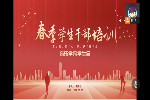 (通讯员 邓双双 彭慧琳 王嘉仪)5月6日中午,音乐学院学生会于线上开展本学期春季学生干部培训课。此次课程以学习党的十九届六中全会精神及湖南省第十二次党代会精神为主题,20级辅导员戴霁斌担任主讲人。