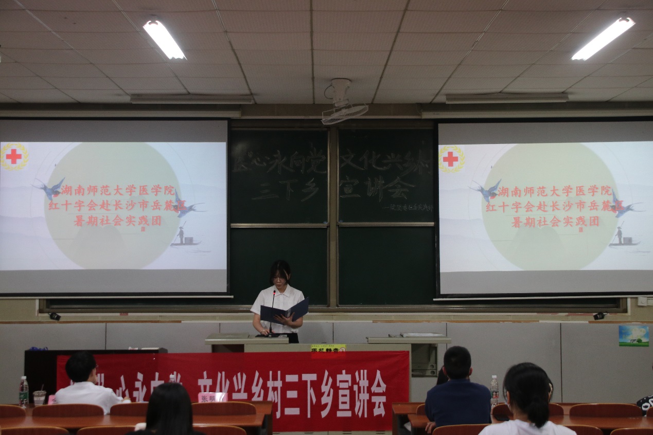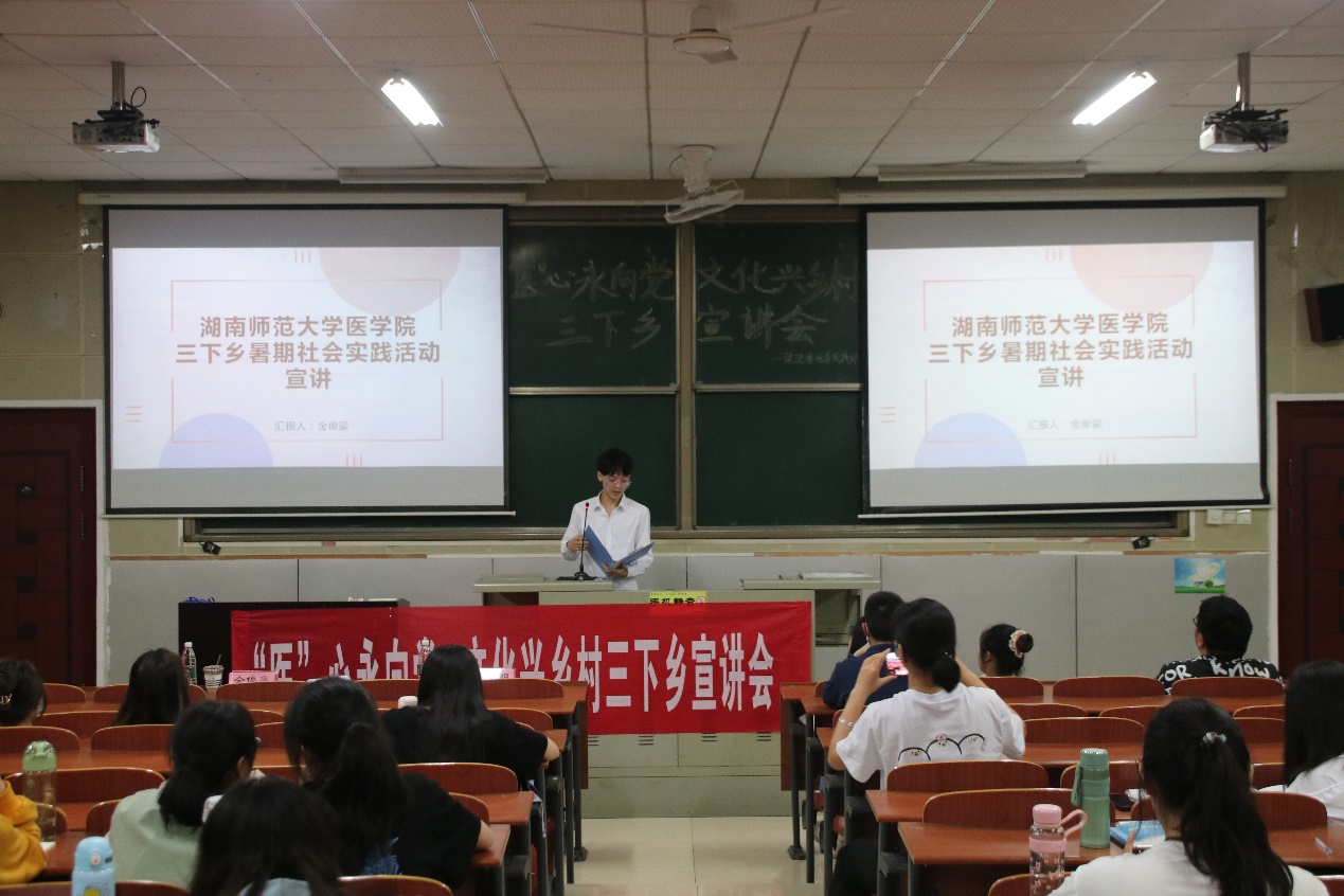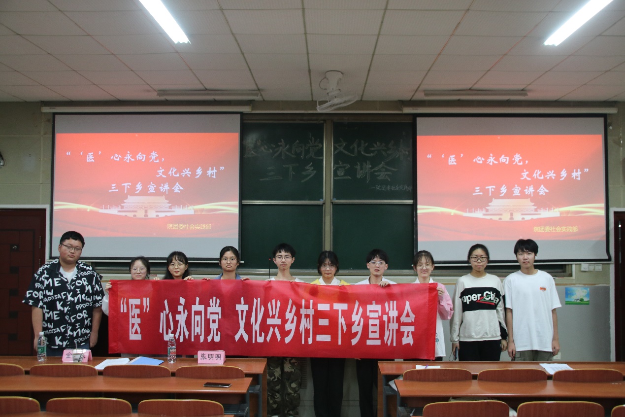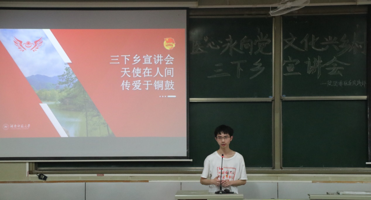 (通讯员 廖映 曾月槟 陈禾)5月26日晚,由医学院团委社会实践部主办的“‘医’心永向党,文化兴乡村”三下乡宣讲会于仁医楼406开展。宣讲会院团委社会实践部志愿者敬锦超主持,院团委书记张明明、暑期社会实践院队队长童海、文阳冰宇、金俊豪出席此次活动,学院20级、21级部分同学参加。
