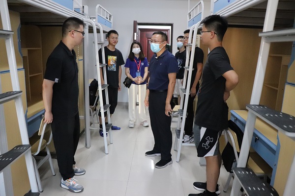 深入学生宿舍视察期间,李利平代表数统院对新生的到来表示热烈的欢迎,并了解了新生宿舍硬件使用及寝室人员到校情况。他强调,同学们要把安全问题放在首位,晚上不要单独外出。