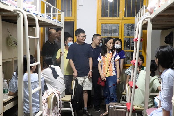 (通讯员 曹慧娟 章怡 石卓)9月11日晚,数学与统计学院(以下简称“数统院”)院长李利平,党委副书记涂榉耀,教学副院长郭水霞,行政副院长陈君,院党委专职组织员覃志斌携数学系主任赖柏顺、信息系主任文有为、统计系主任周杰明一行走访咸嘉湖宿舍看望慰问2022级新生,学工办主任兼2022级新生辅导员李俐、2022级新生辅导员李师澳及部分新生班导陪同介绍。