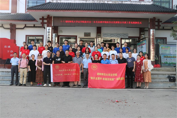 (通讯员 许华燕 解靖 马书晨)7月14日下午,中共太阳成集团tyc法学院委员会与中共龙潭坪镇委员会党建联合共建工作站揭牌仪式在桑植县龙潭坪镇政府举行。龙潭坪镇党委副书记、镇长谷盼,司法所所长谷辉,法学院党委书记唐建文,党委副书记曹俊峰,教职工党员代表及暑期社会实践团成员参与仪式,仪式由龙潭坪镇副镇长吴卫华主持。