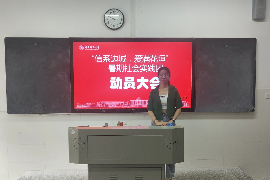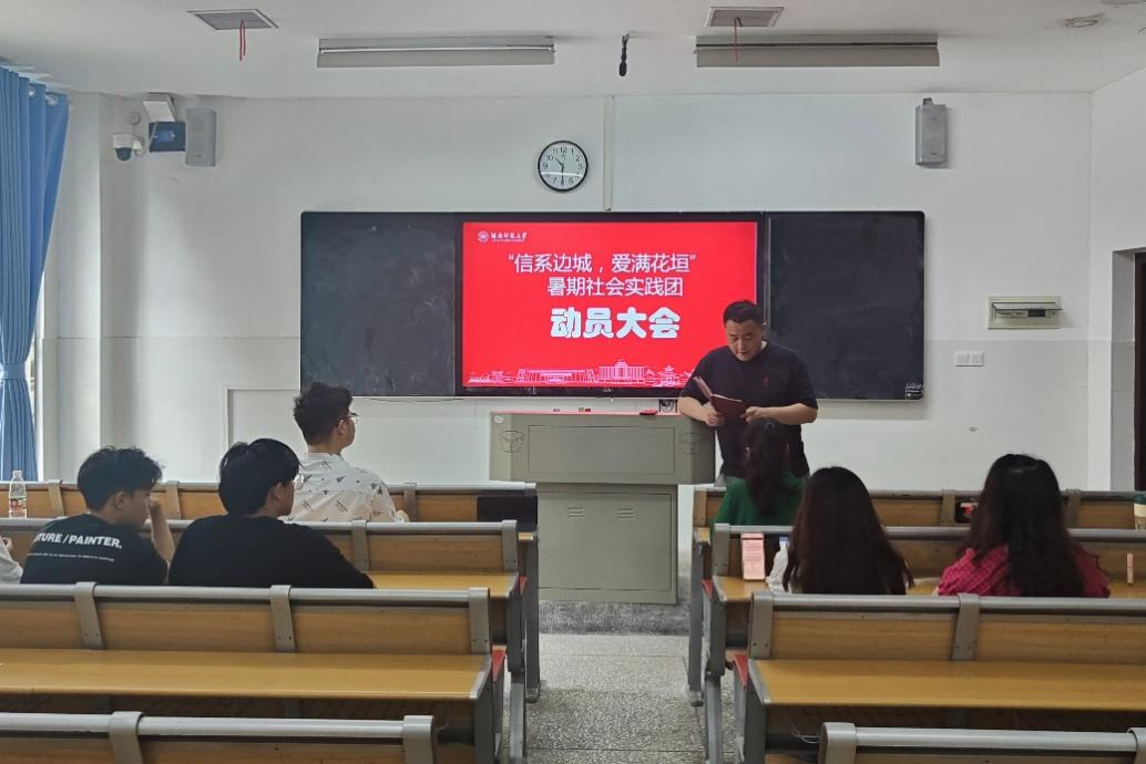(通讯员 陈靓)6月30日上午,为让同学们更好的了解三下乡活动的意义及安全问题,“信系边城队”于中和楼127教室开展三下乡动员大会暨试课活动。大会由队长彭科荣主持,院团委指导老师、“信系边城队”指导老师肖笛参加会议并对安全等问题作出讲话。