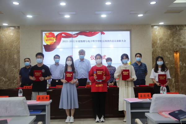 (通讯员 黄宇红 曹馨怡)5月24日中午,物理与电子科学学院于格物楼509报告厅举行2021-2022年度五四团内总结表彰大会。院长唐东升、院党委书记罗嵘、副院长钱盛友、欧阳钢、李友明、院党委副书记郭铭伟、院党办主任吴浪波以及学工办全体老师出席此次会议。
