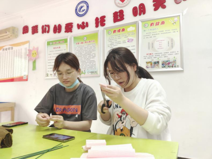 志愿者学习康乃馨制作