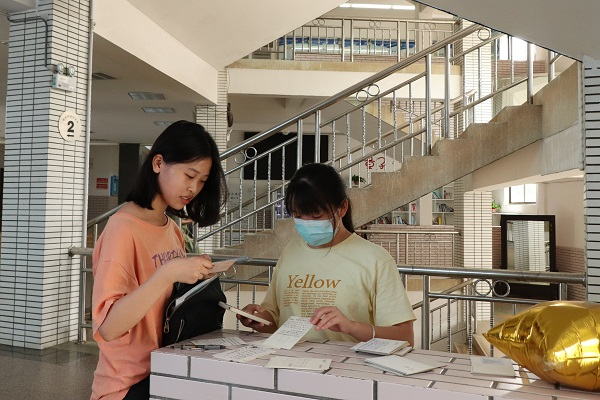 活动采取自由答题模式,回答正确即可增加积分,按照积分排名选出最后的优胜者,优胜者可领取明信片、日历、书签等精美奖品。活动开始前一晚,各部门将准备好的数学题目抄录在精美卡片上,并粘贴布置在格物楼二楼大厅处。活动开始,同学们积极参与,踊跃答题,解答完成后,前往格物楼大厅值班人员处上交解答过程,并进行积分登记。